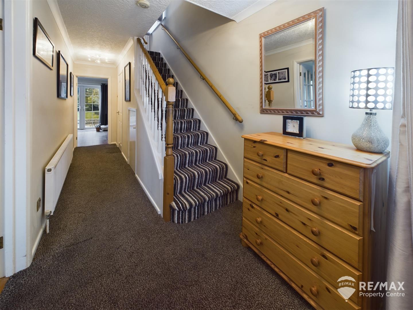 With understairs storage cupboard, ground floor WC, doors to kitchen and lounge/diner, stairs to first floor