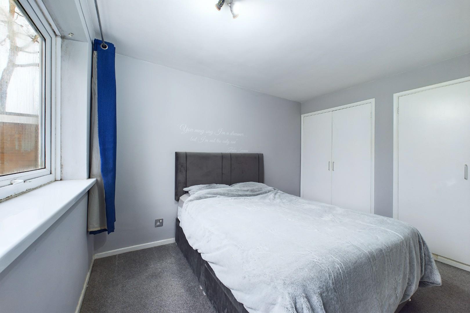 With a door leading from the entrance hall, fitted wardrobes to the side, a double glazed window to the rear and a electric storage heater.