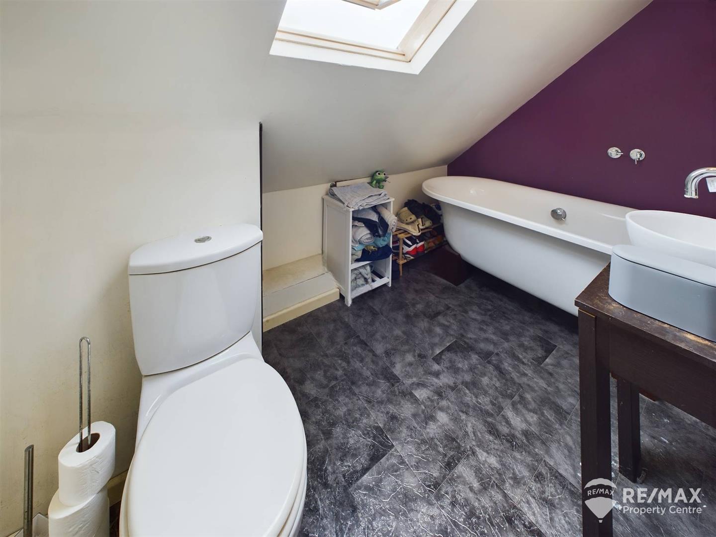 With Velux window to rear aspect, freestanding bath, low level WC and counter top wash basin