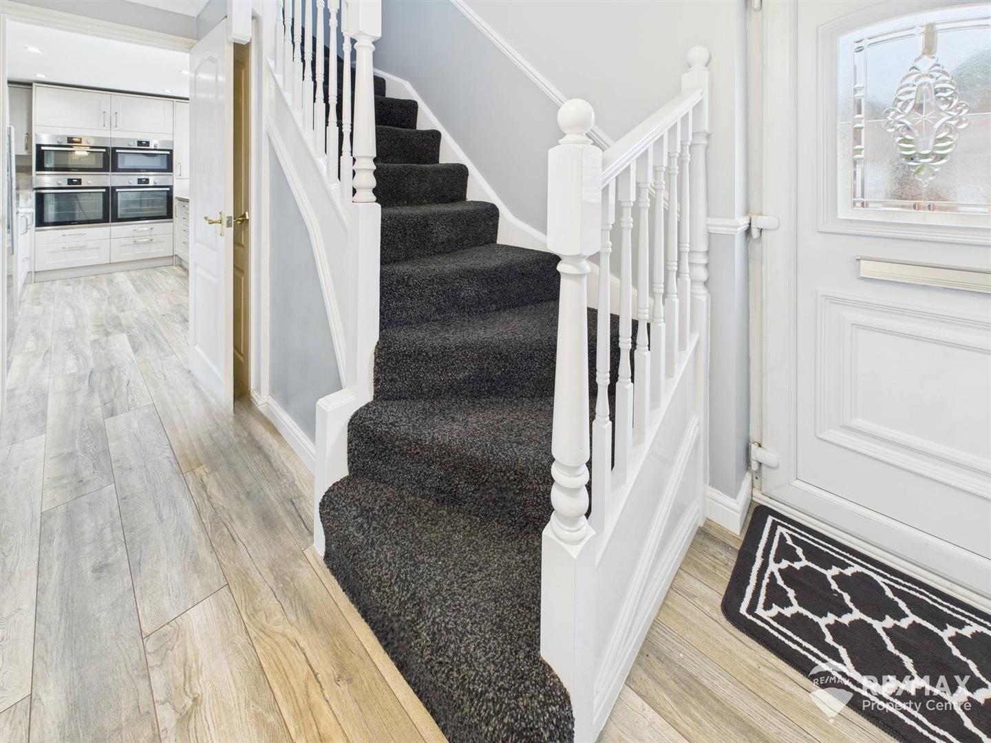 UPVC glazed entrance door, doors to GF WC, Lounge and kitchen/diner, under stairs storage cupboard, stairs to first floor