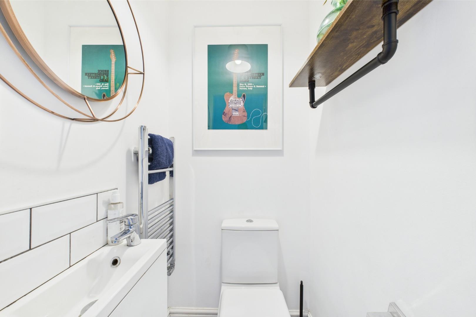 With a door leading from the dining area, WC, hand wash basin and a central heating radiator