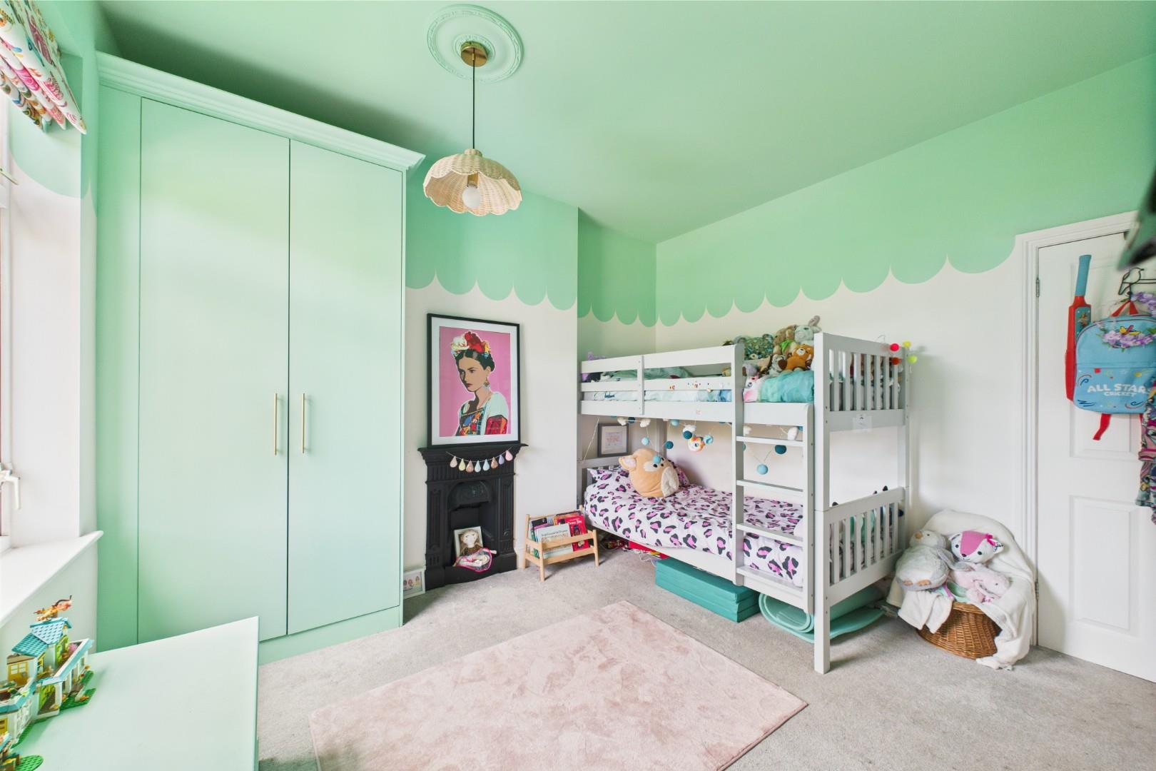 With a door leading from the landing, built in wardrobe storage, traditional fireplace, a double glazed window to the rear and a central heating radiator