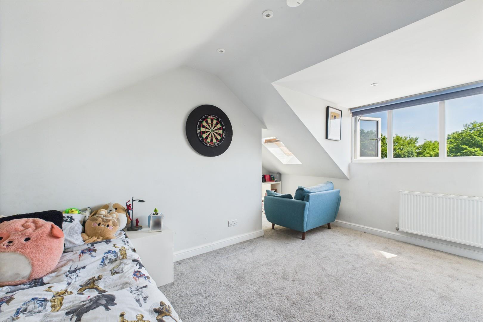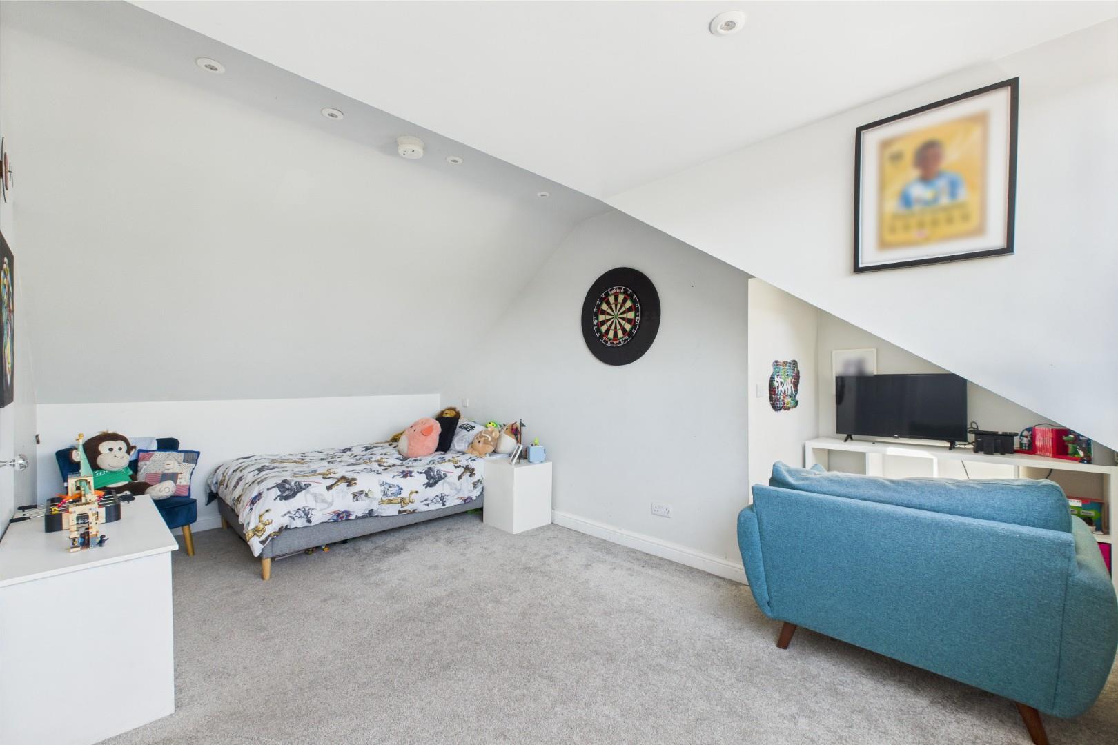 With a door leading from the second stairway, built-in eaves storage, double glazed dormer window to the rear and a central heating radiator