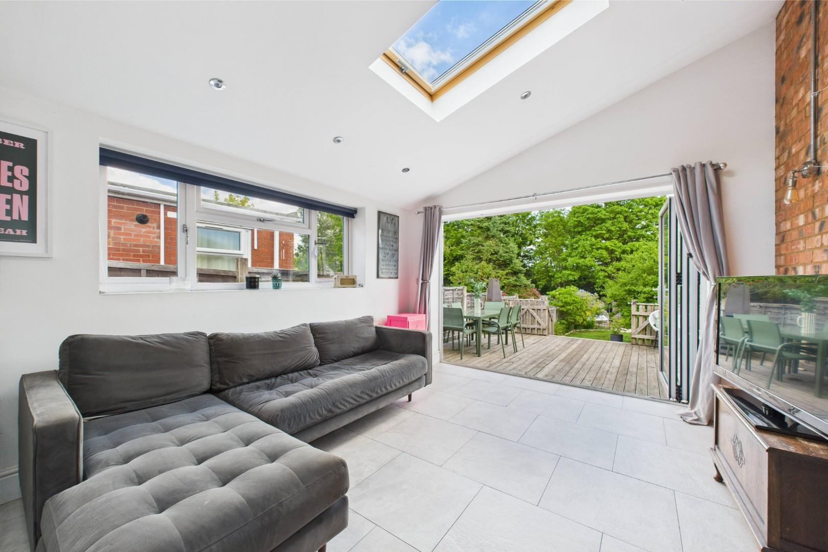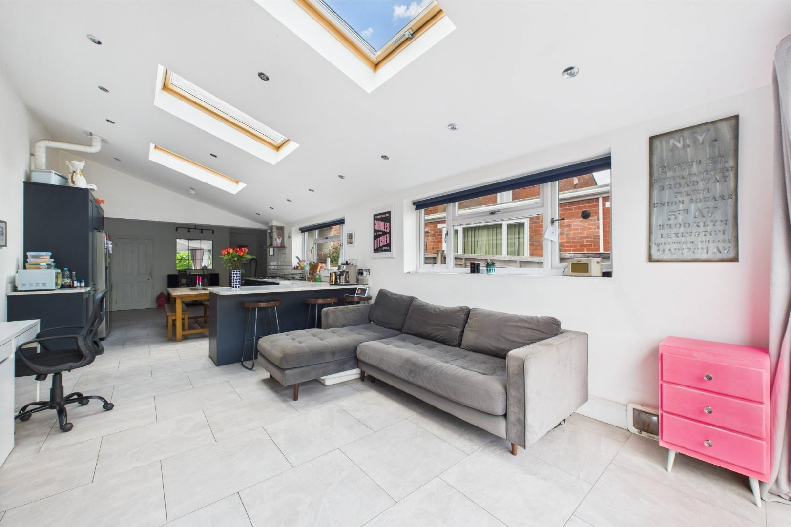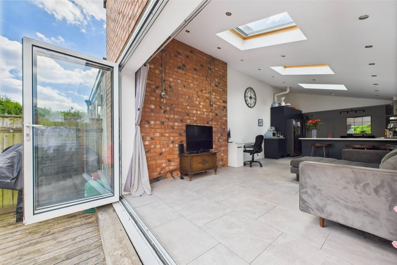 - Open plan living space to the rear