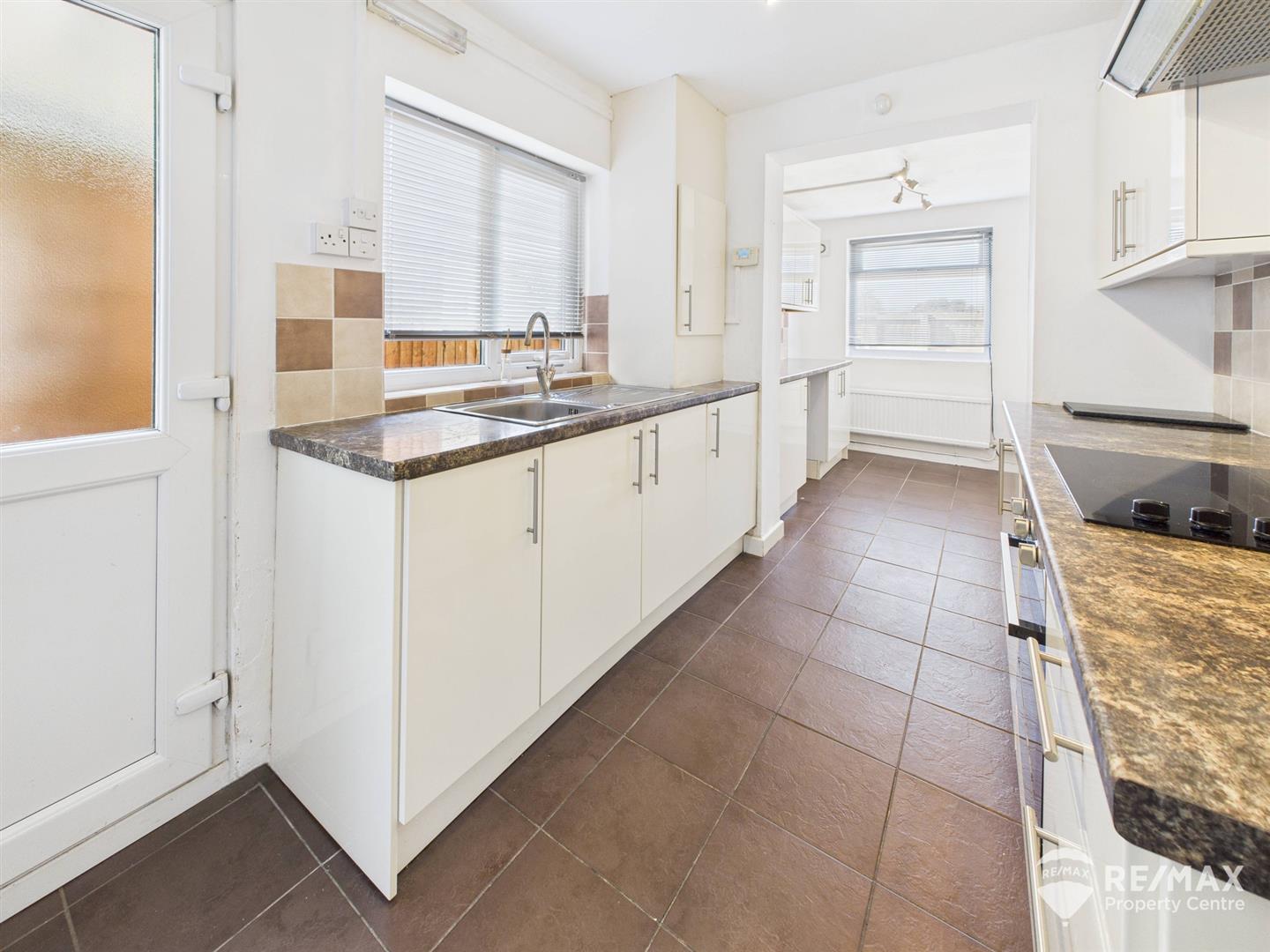 Fitted with a range of modern wall and base units, stainless steel sink/drainer, built in electric cooker & hob, extractor hood, spaces for fridge/freezer, dishwasher, plumbing for washing machine, windows to both side and rear aspects, side door leading to rear courtyard garden