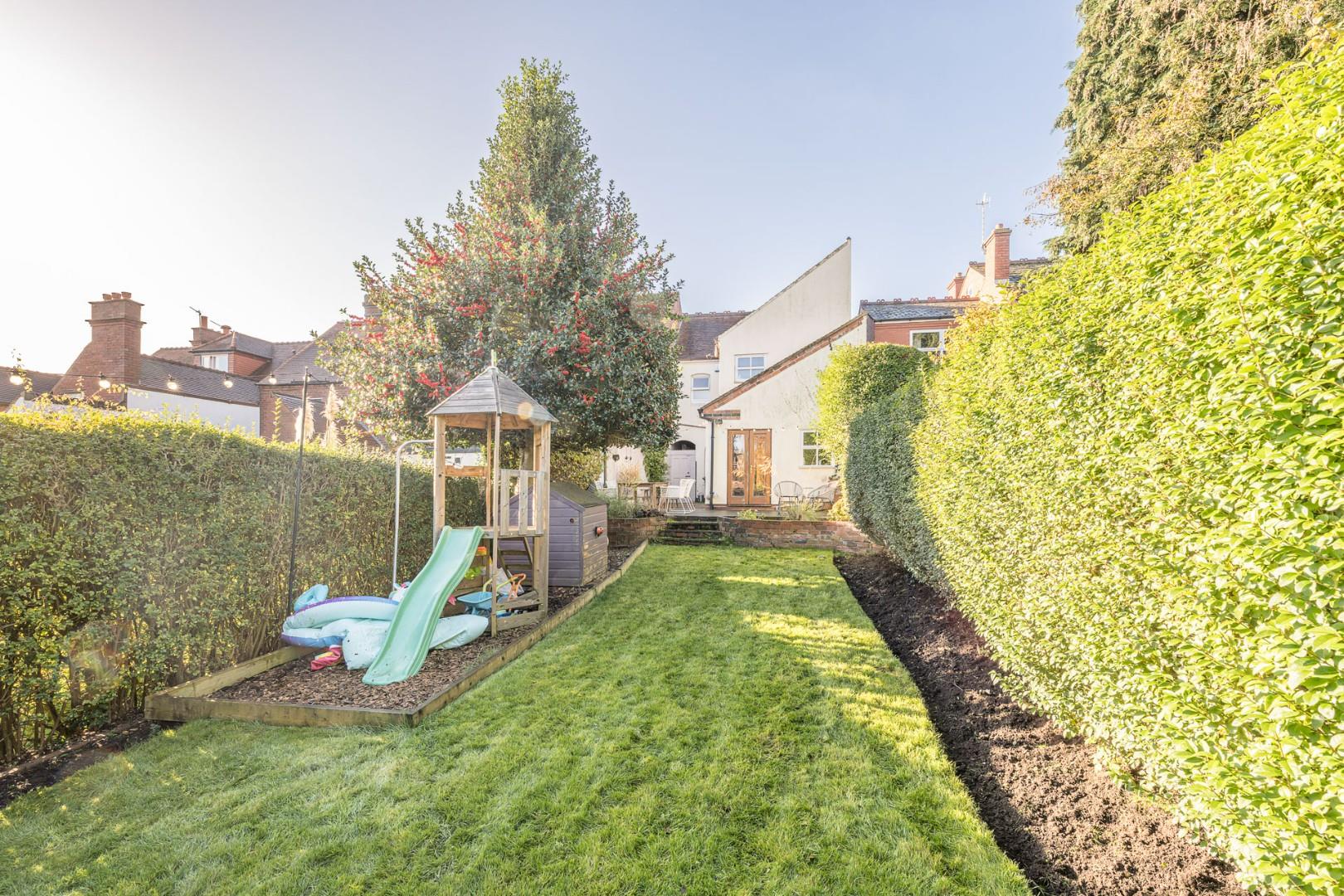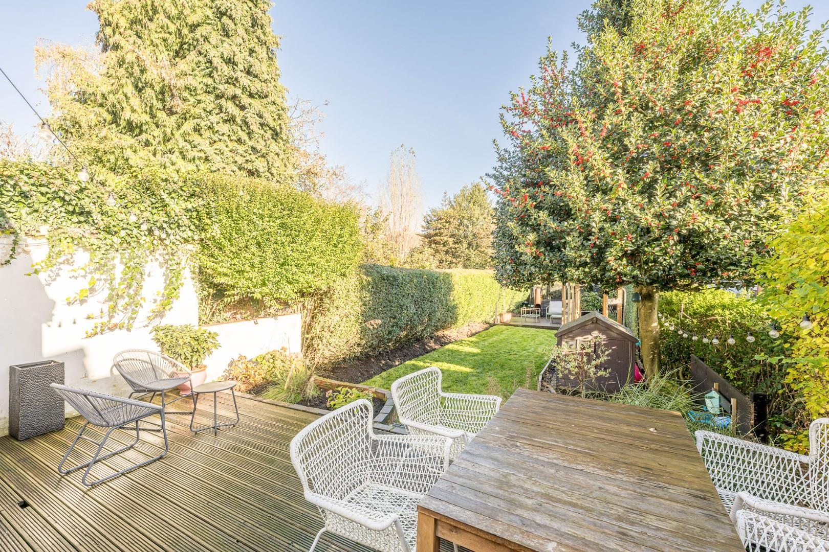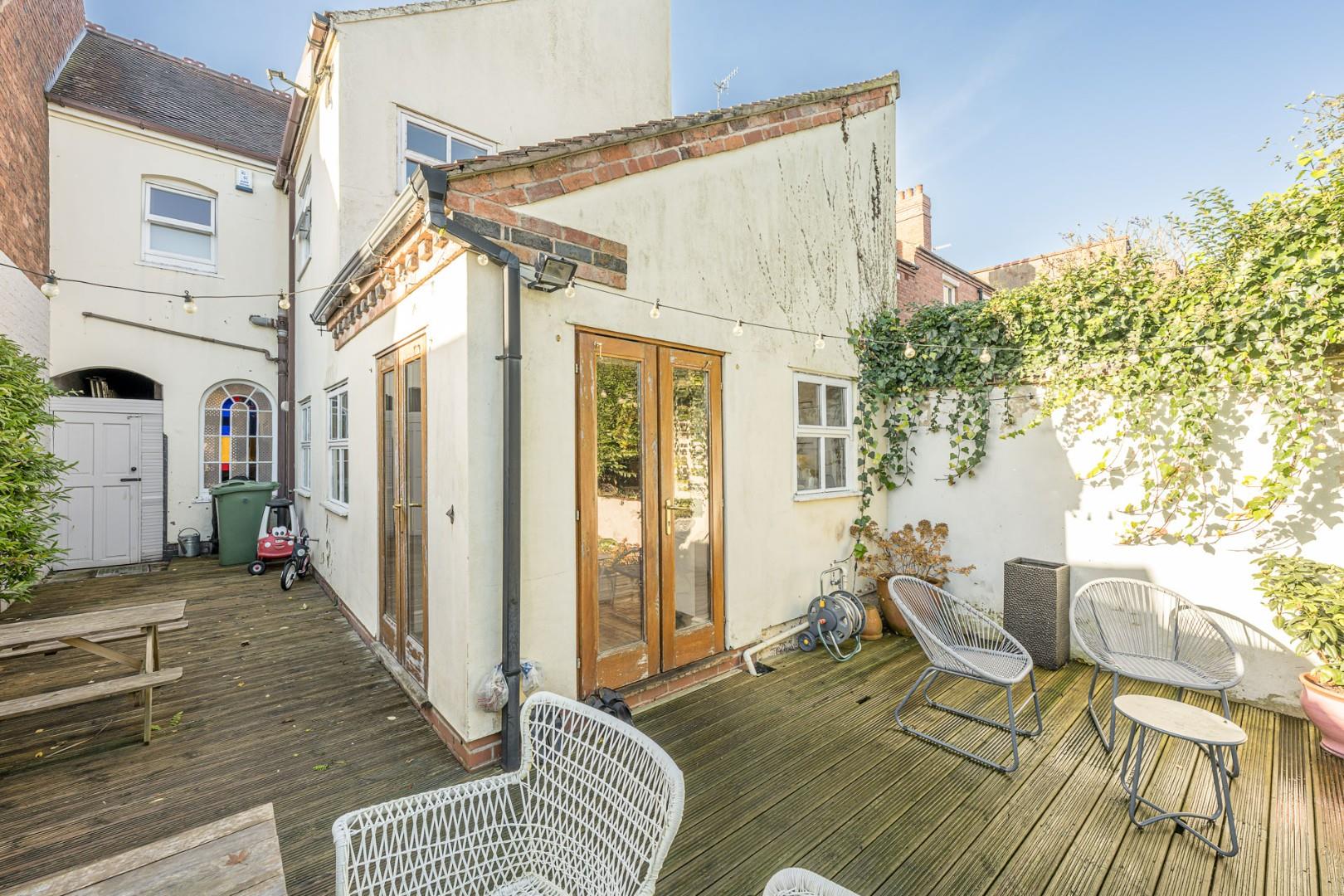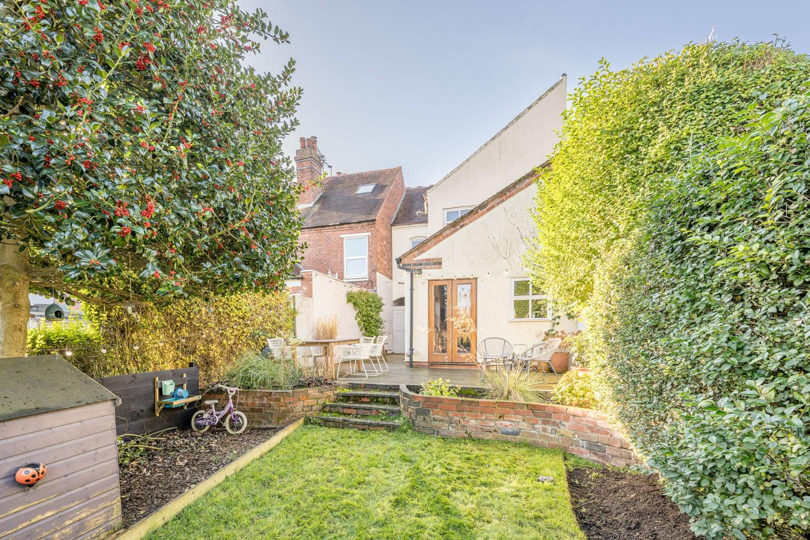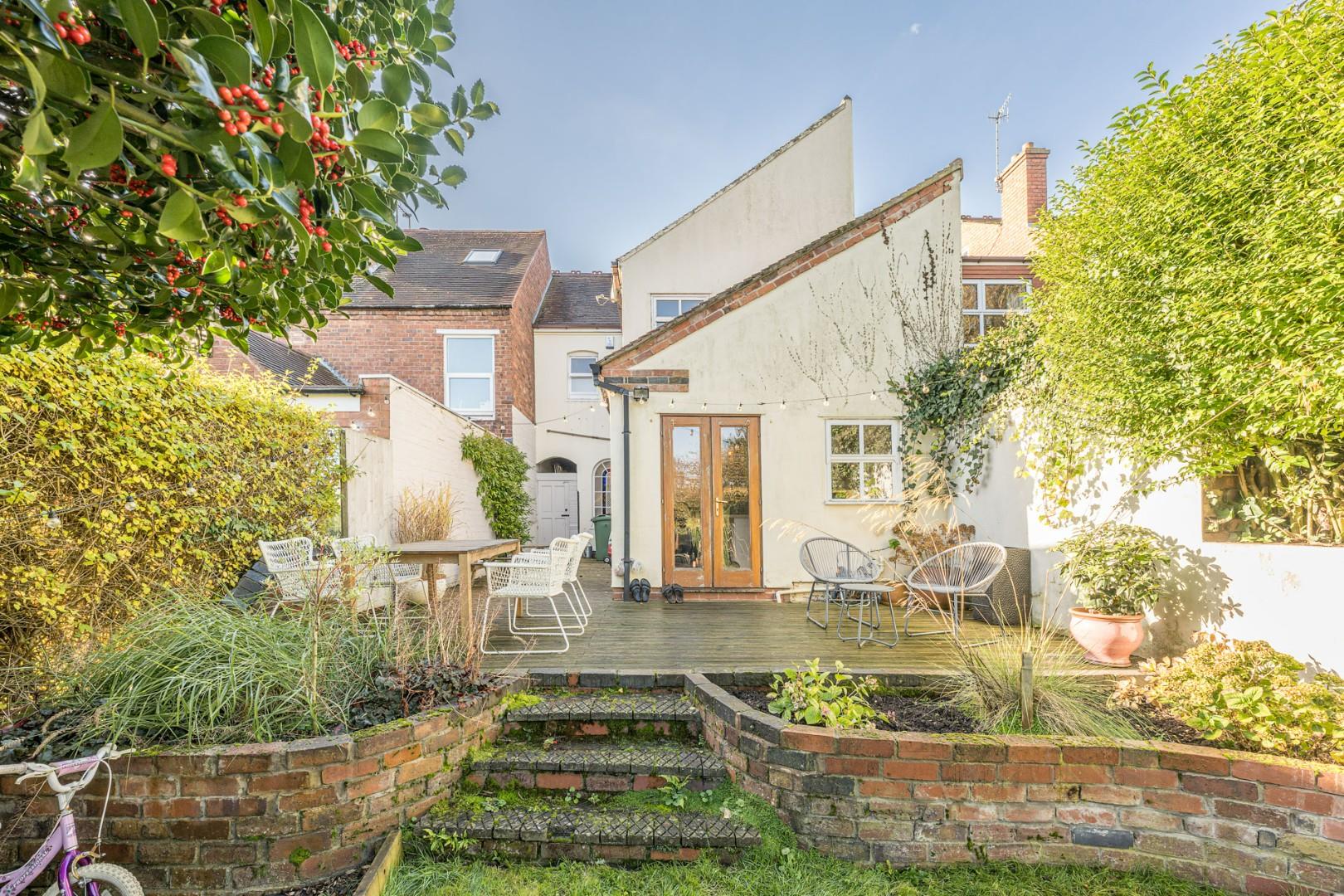 Upstairs, you’ll find three generously sized bedrooms and a contemporary family bathroom. Outside, the rear garden is ideal for families and summer gatherings, featuring two large decking areas and a central lawn.