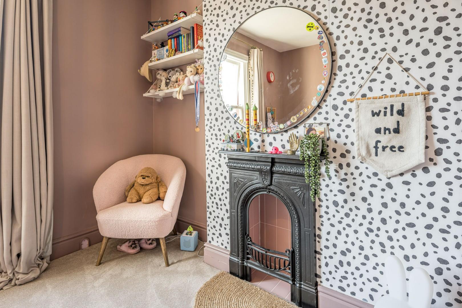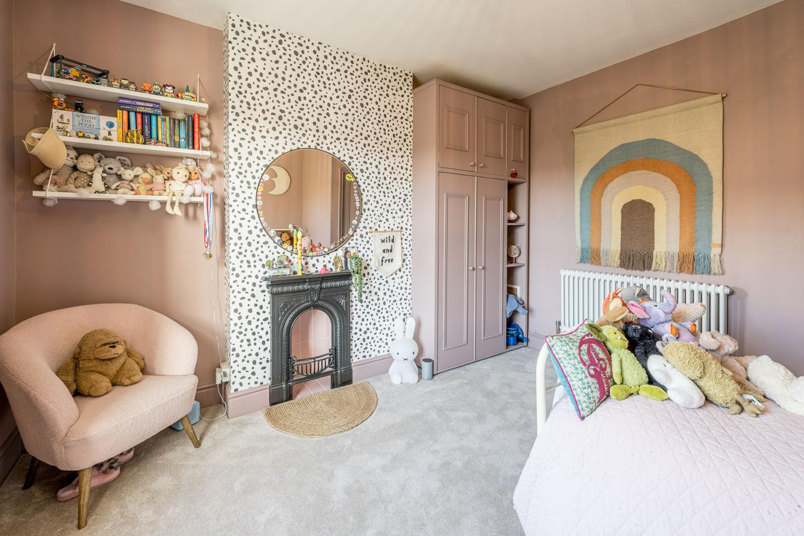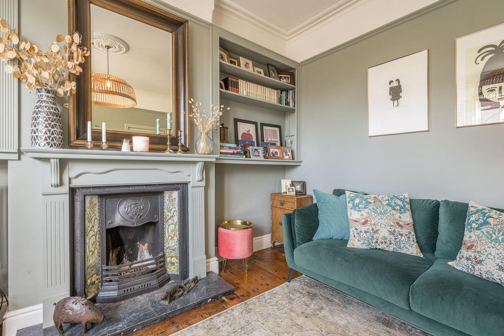 With a door from the landing, feature decorative fireplace, glazed window to front and a central heating radiator