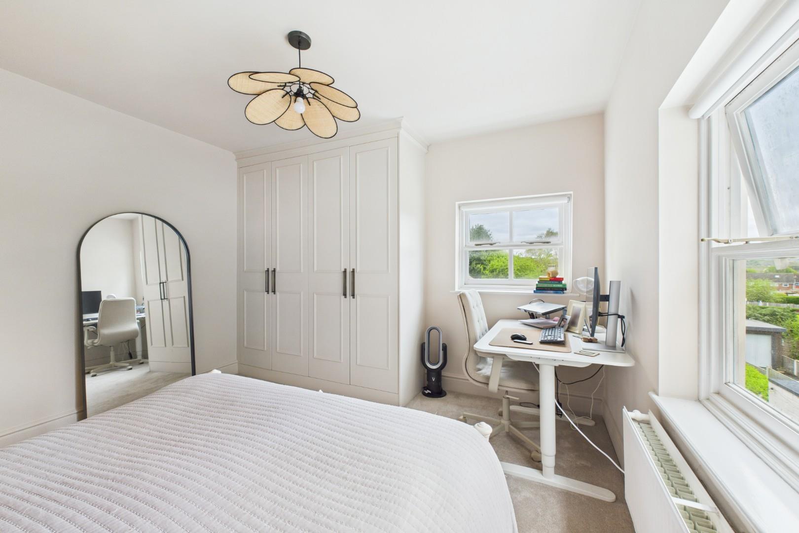 With a door from the landing, fitted wardrobes, double glazed windows to the rear and a central heating radiator