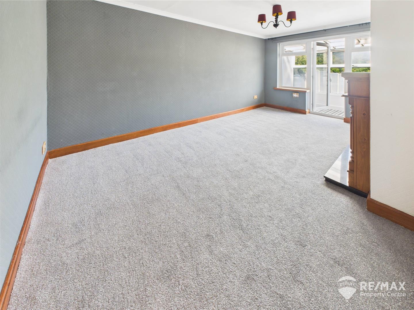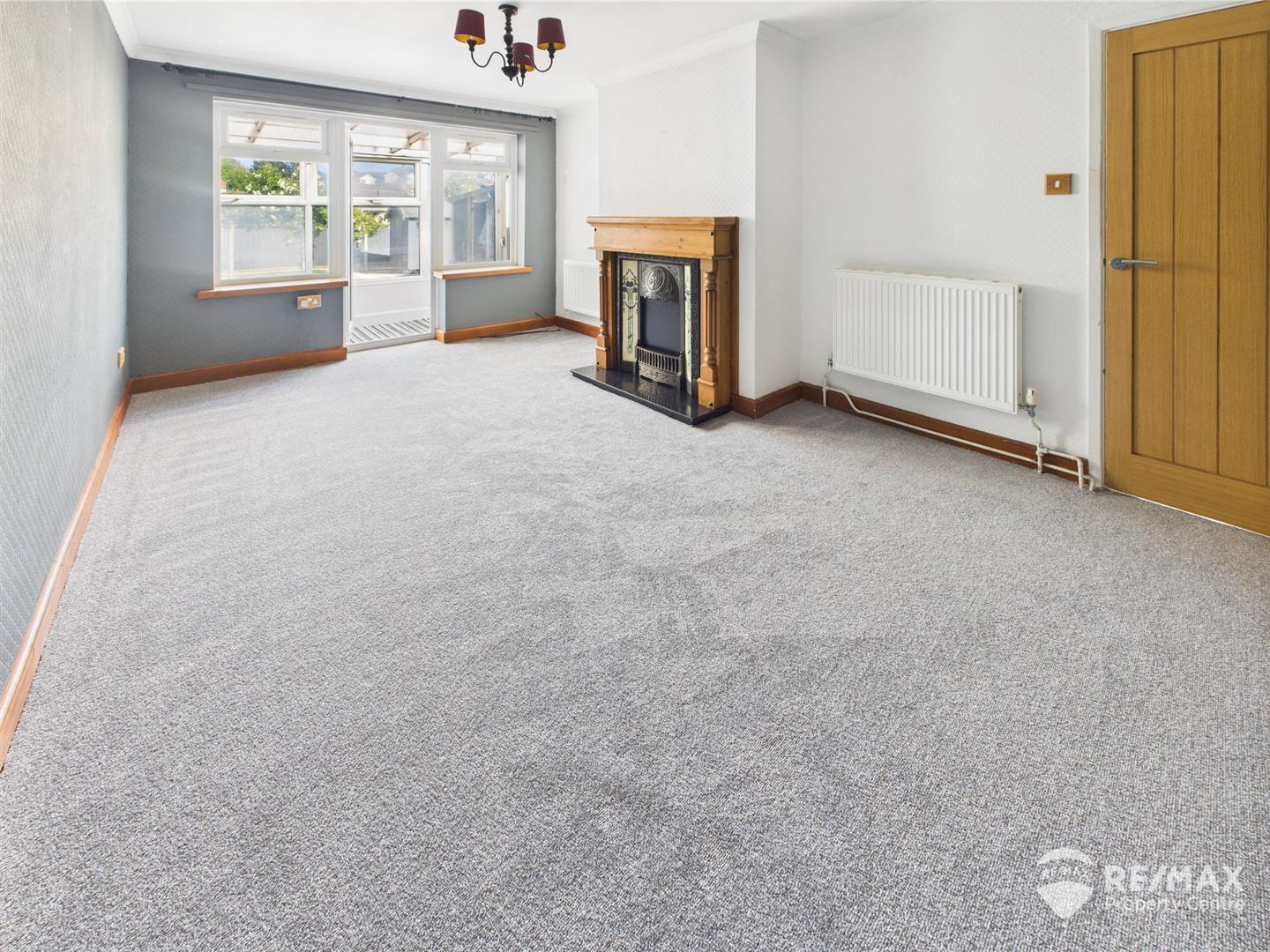 Feature fireplace with decorative tiling and wooden surround, 2 windows to rear aspect and door leading through to Sun Room, newly laid carpet