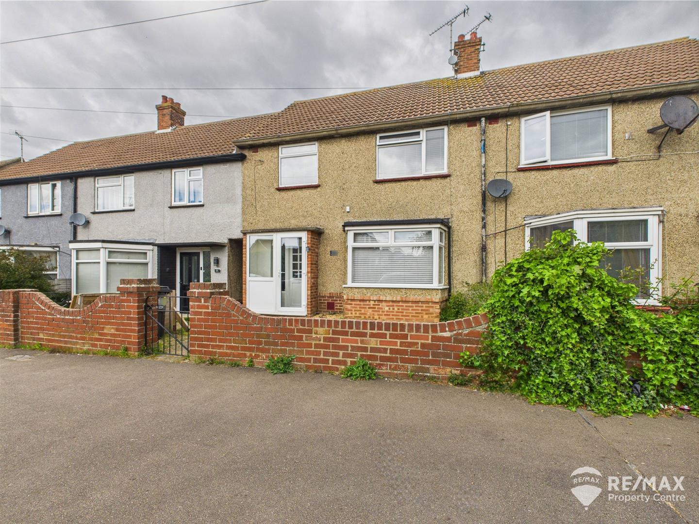 The front of the property is back from the road and enclosed by a brick wall with access gate leading to entrance porch, shared side access to the rear garden