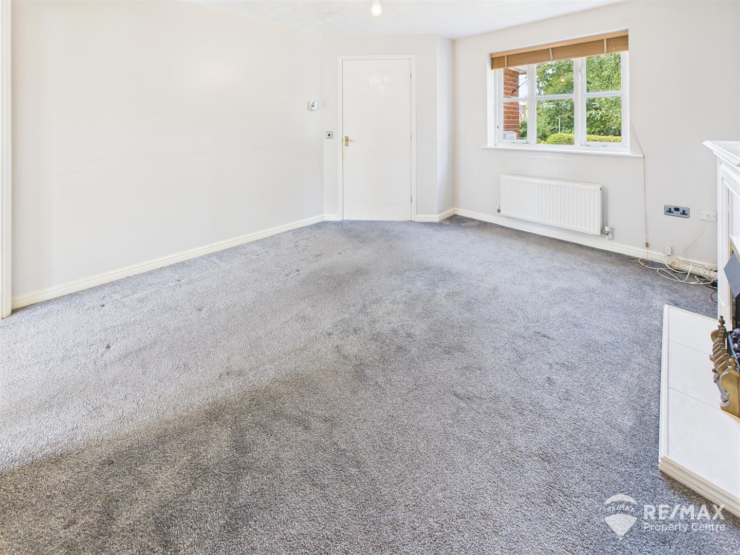 Fireplace surround housing electric fire (not tested by agent), double doors leading through to kitchen/diner and window to front aspect