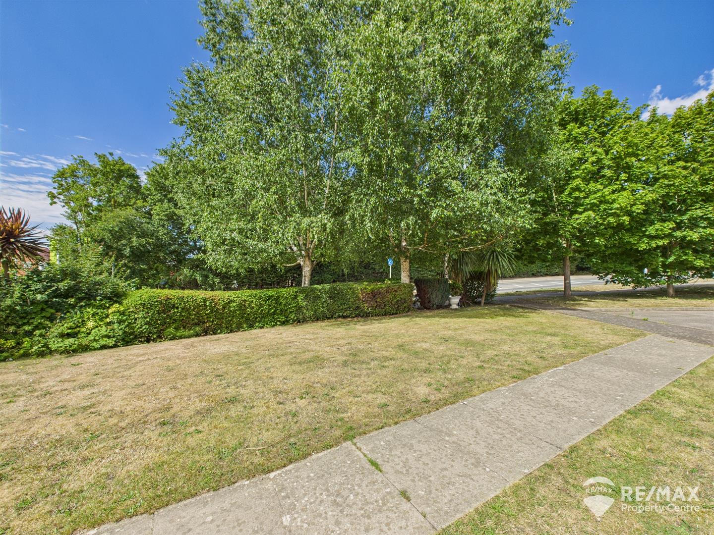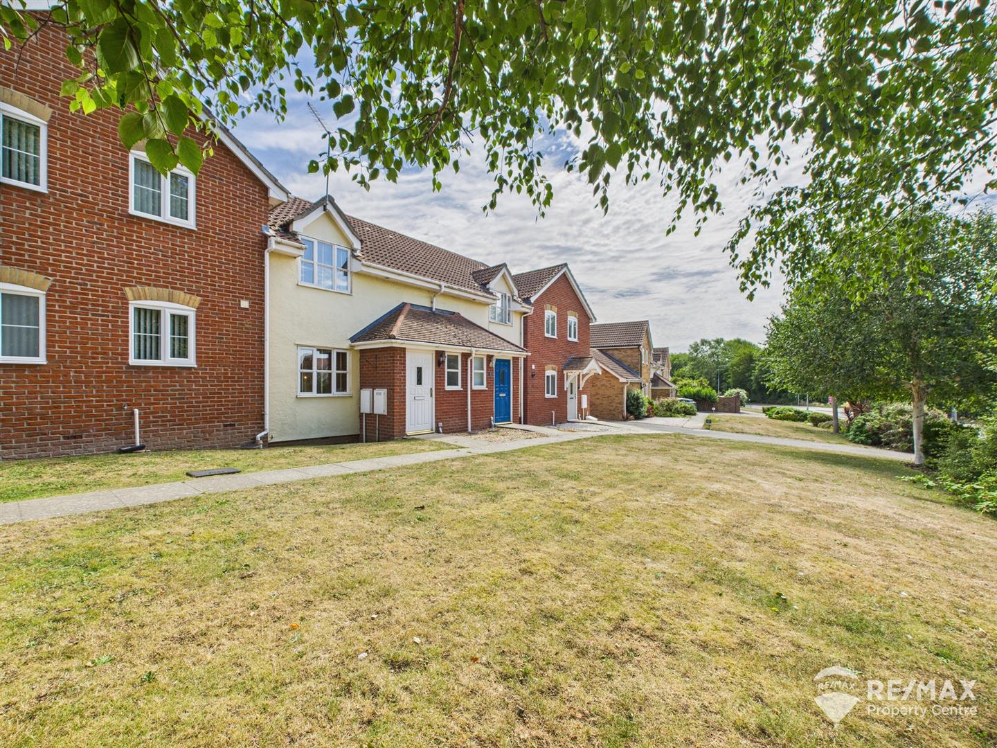 To the front of the property a lawned open plan area and a path to front door