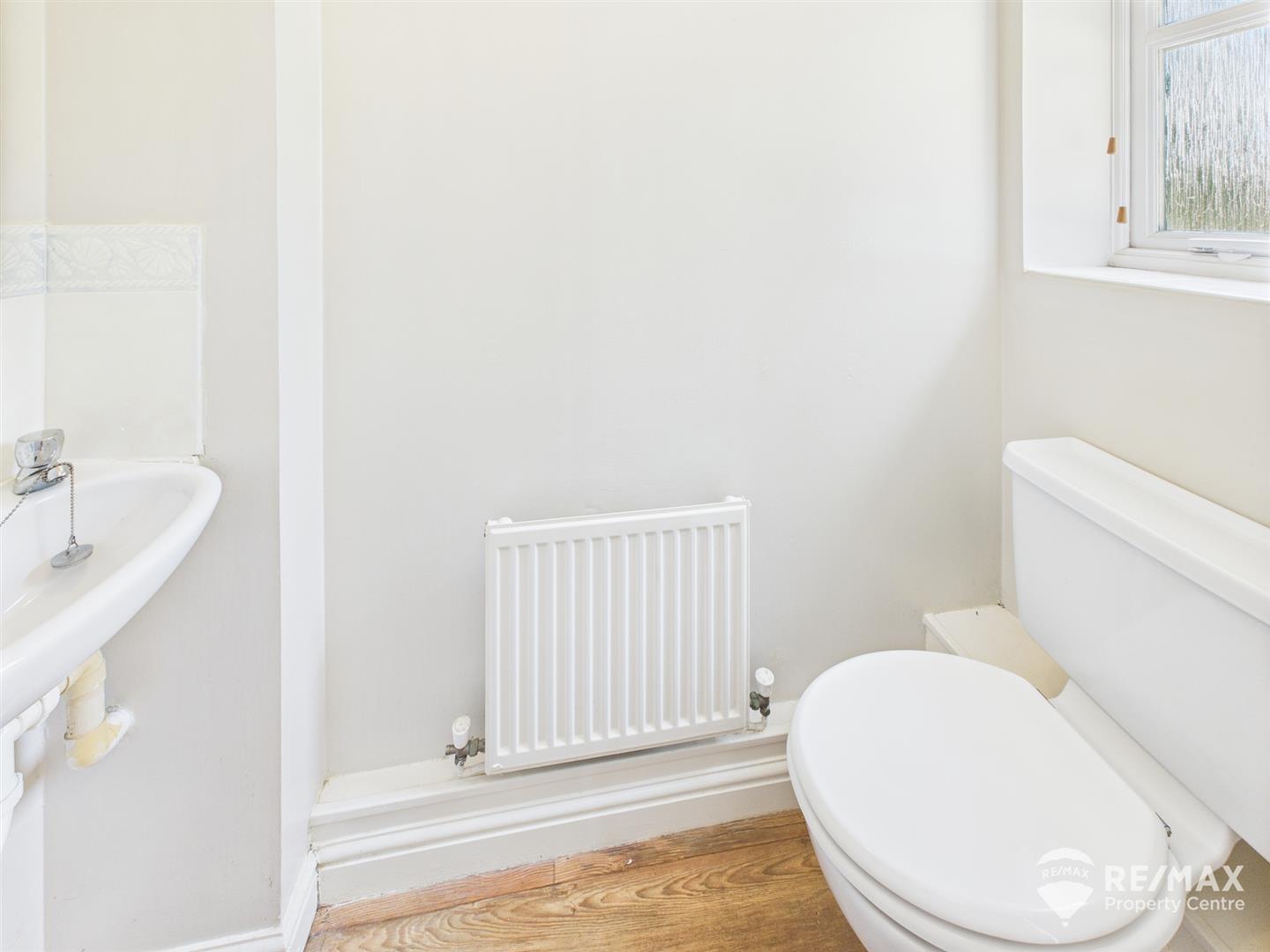 With low level WC, wall mounted wash basin and opaque window to front aspect