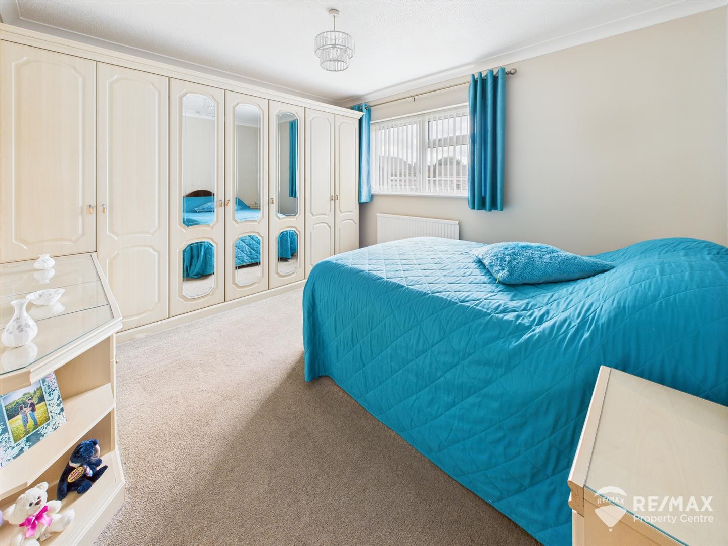 With window to rear aspect, 3 x fitted double wardrobes, I x fitted single wardrobe, built in drawers and display shelving