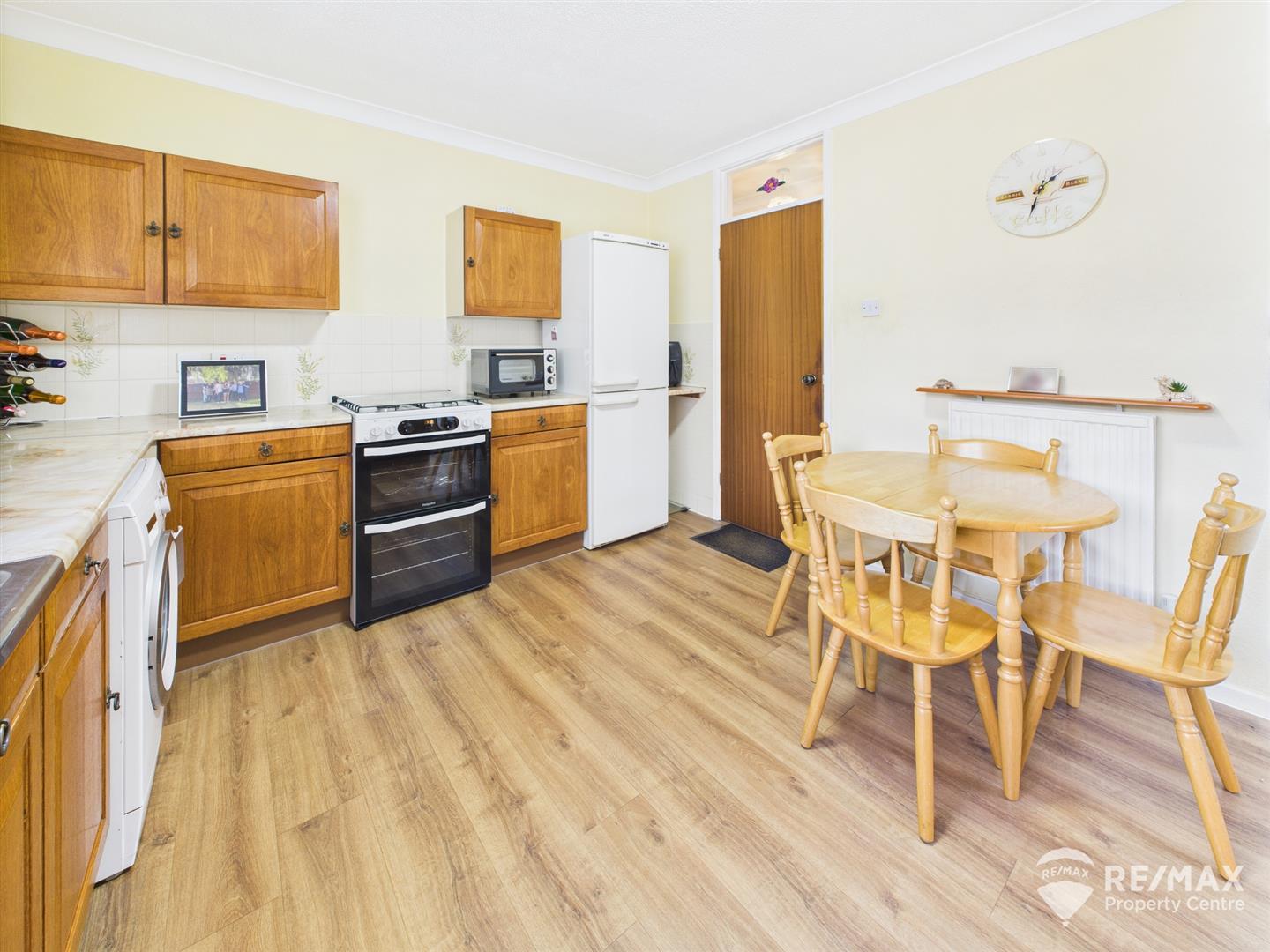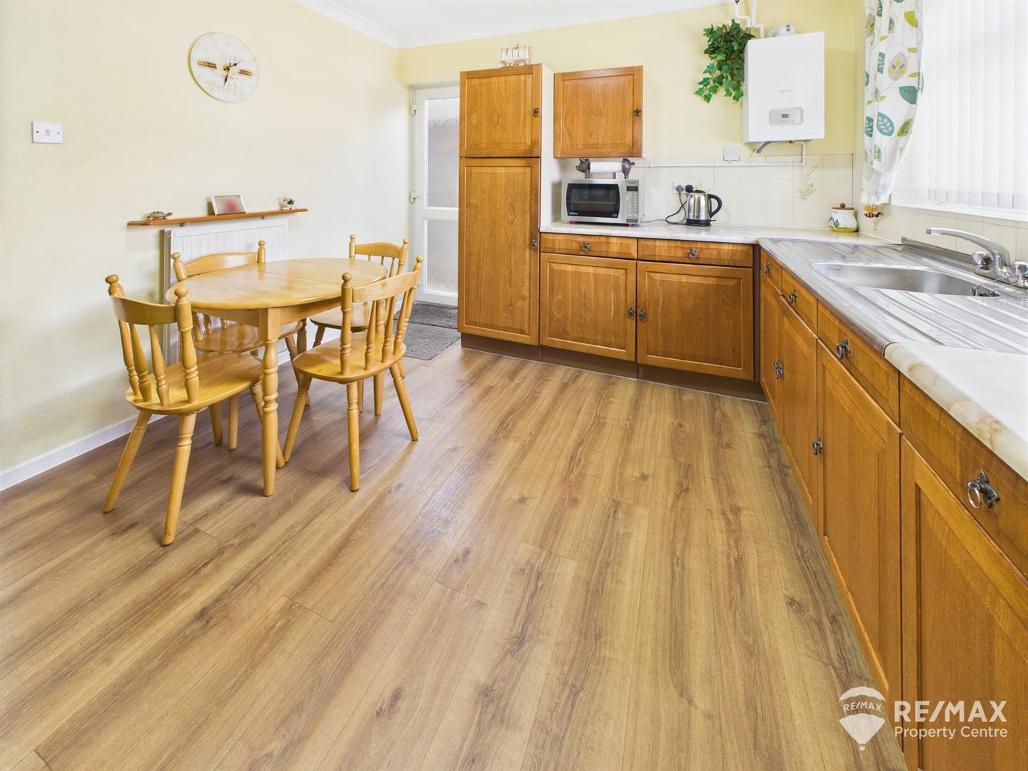 Fitted with a range of wall and base units, rolled edge worktops, complimentary wall tiling, space for all appliances, stainless steel sink and drainer with mixer tap, wall mounted extractor, wall mounted gas boiler, window to front aspect and UPVC double glazed door leading to side/rear garden