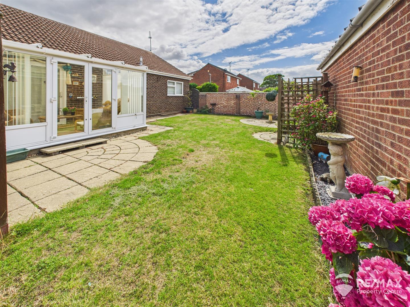 UPVC with double glazing to 3 sides, French doors leading out to rear garden
