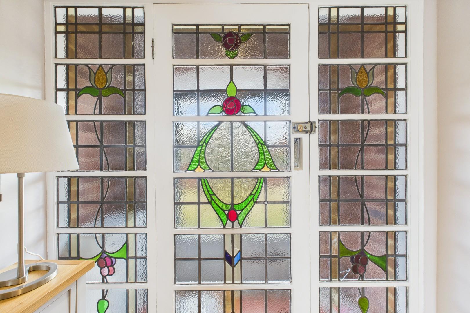 With a door leading from the front, original period stained glass feature doorway to the entrance hall
