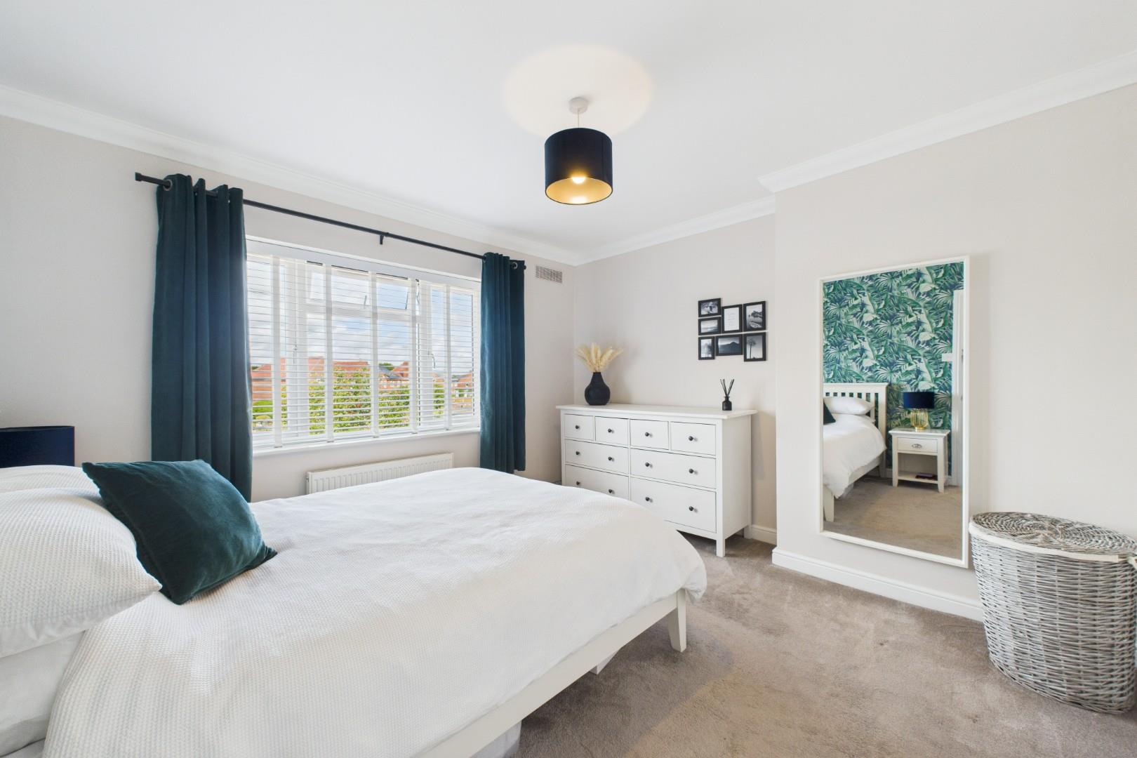 Being set on an imposing corner plot behind half-height brick wall, two separate gravelled driveways, lawn border, roller door leading to the garage, a door leading to the entrance porch and an additional door leading to the utility room