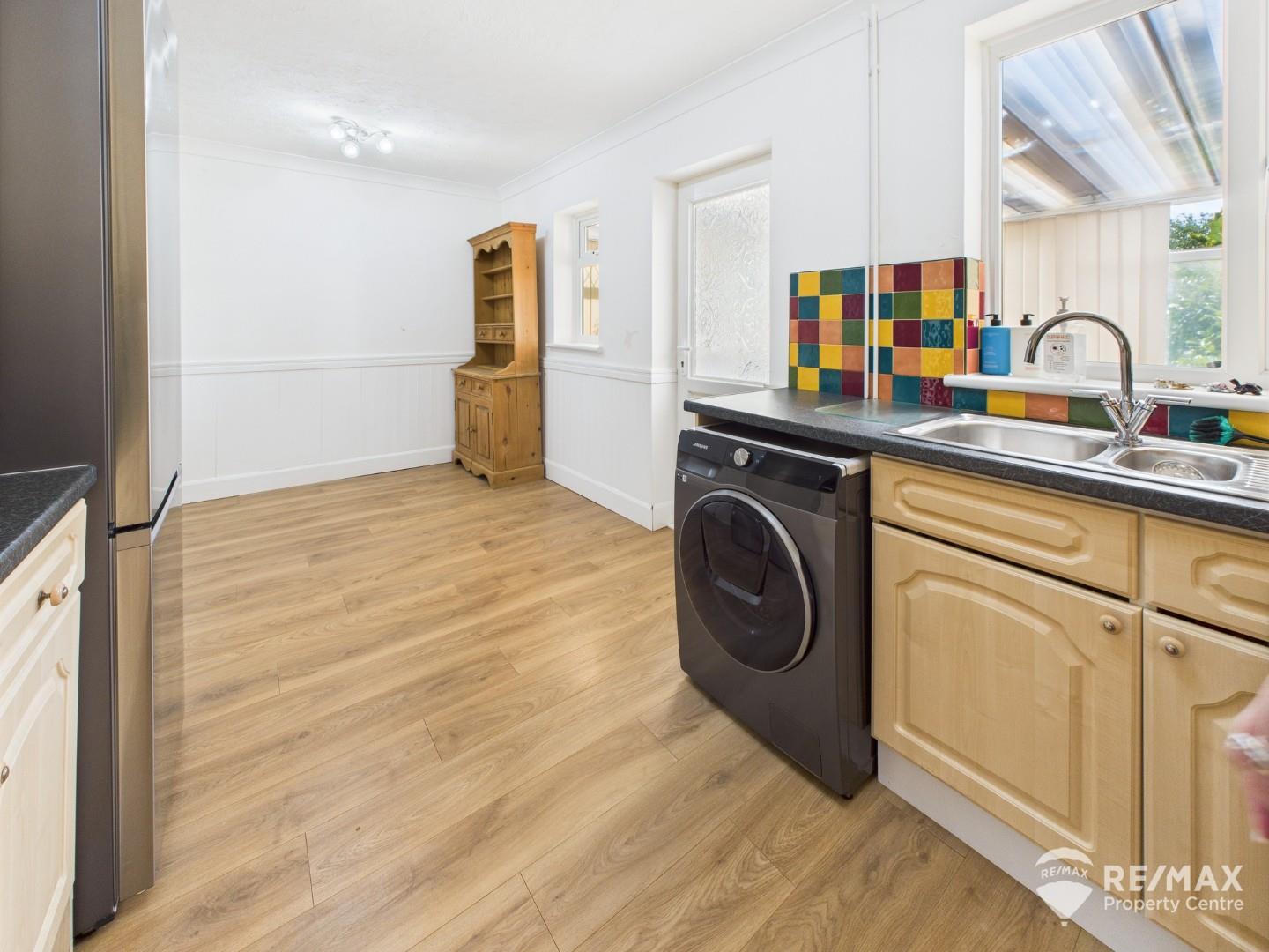 Fitted with a range of wall and base units, space for cooker , washing machine and fridge freezer, extractor fan, one and a half bowl stainless steel sink, complimentary wall tiling, window to rear aspect and door leading to conservatory and garden