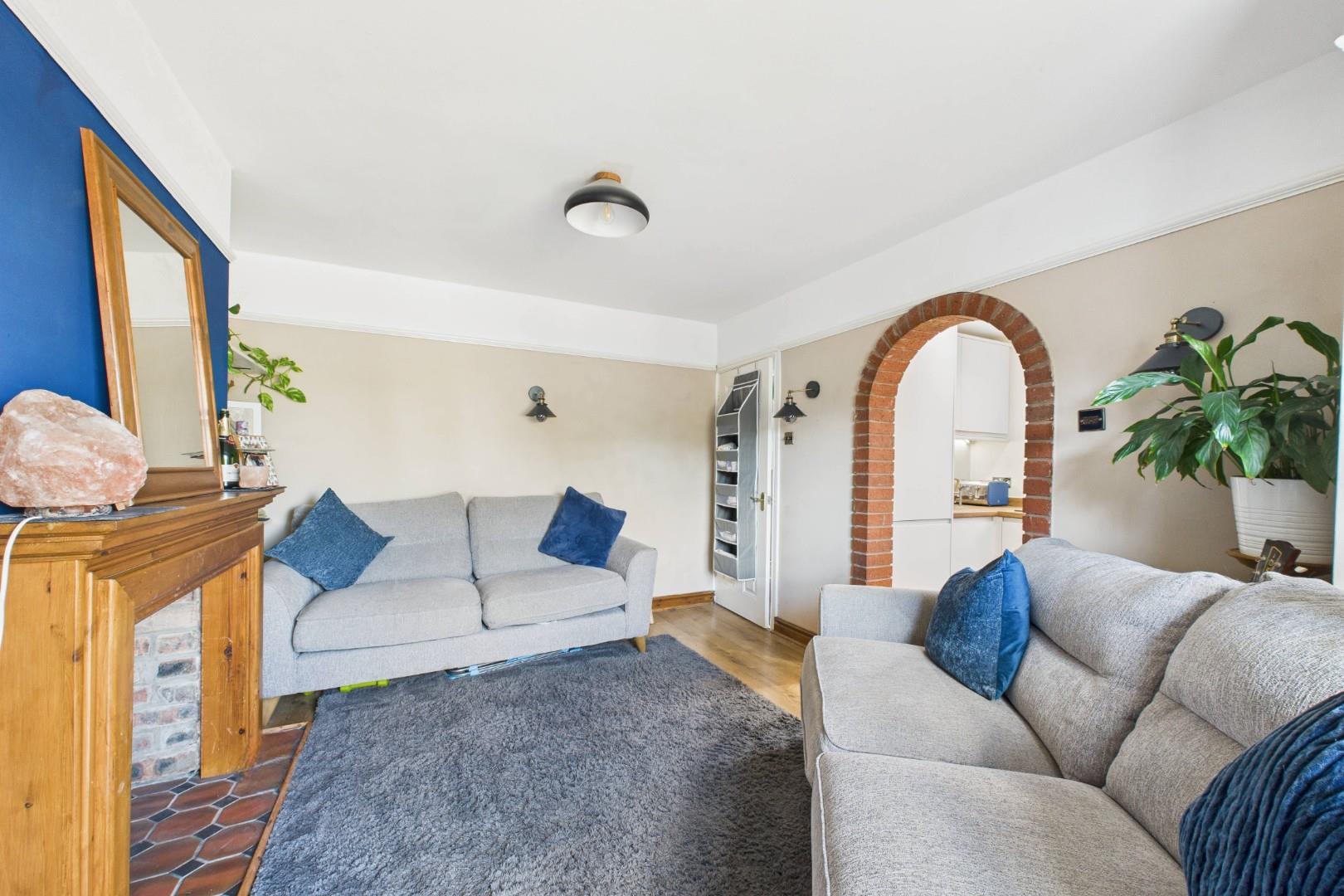 With a door leading from the entrance hall, fireplace with decorative surround and hearth, double glazed patio doors to the rear garden, an archway opening to the kitchen and a central heating radiator