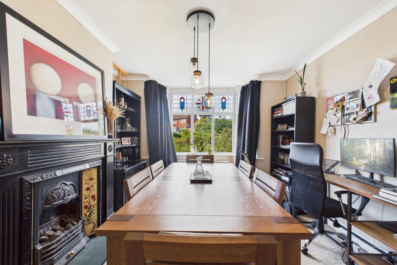 With a door leading from the entrance hall, feature fireplace with decorative surround and hearth, a double glazed bay window to the front and a central heating radiator