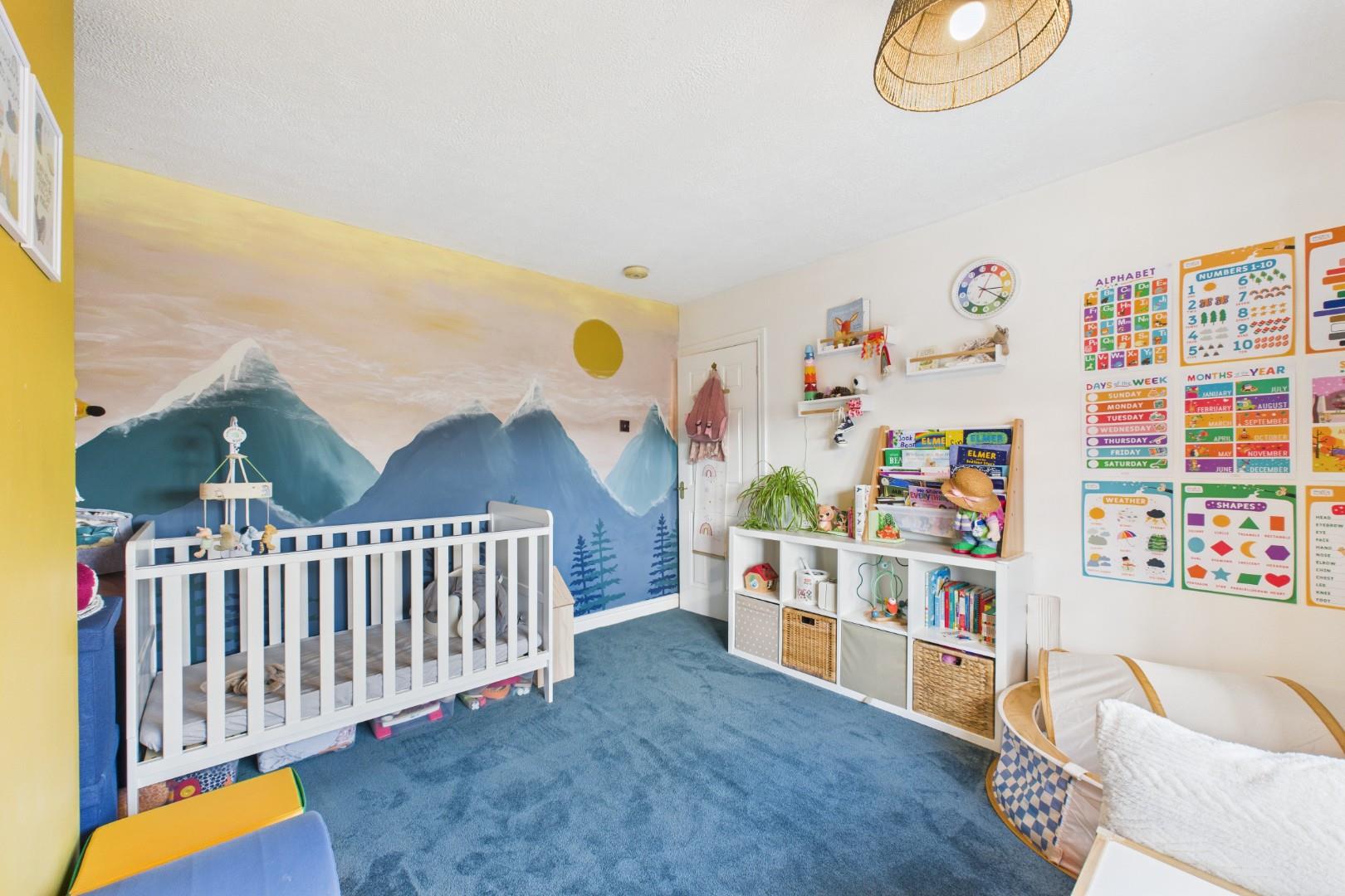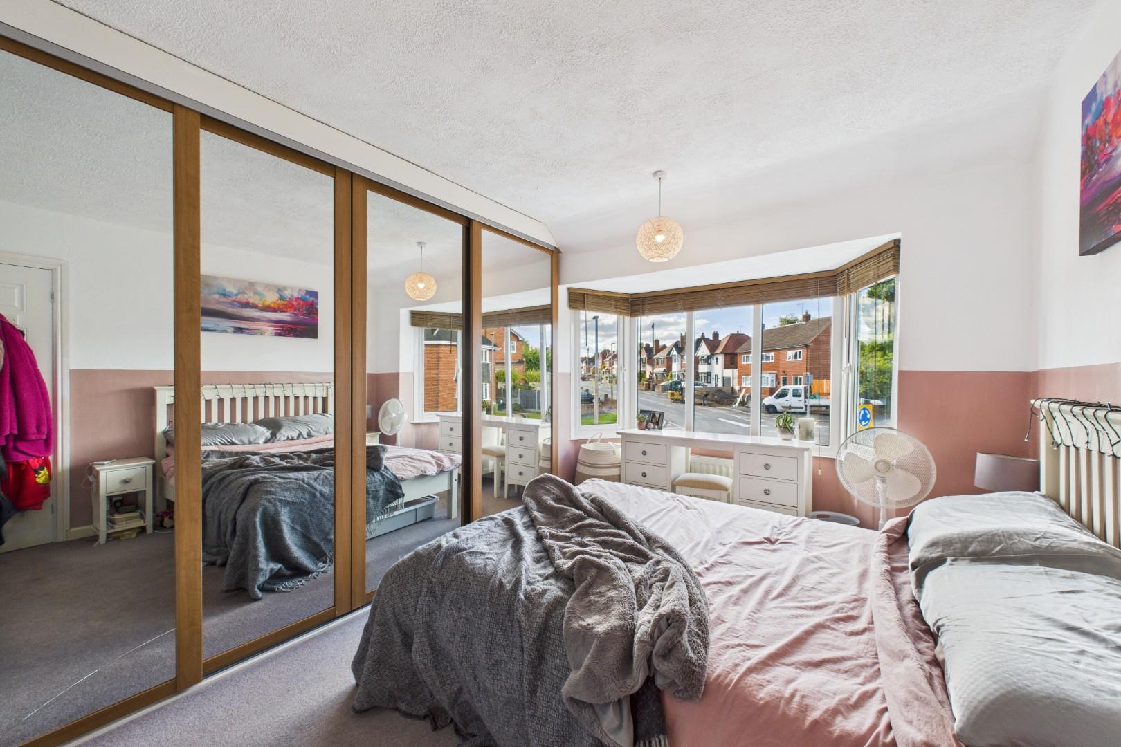With a door leading from the landing, built in wardrobe storage, a double glazed bay window to the front and a central heating radiator