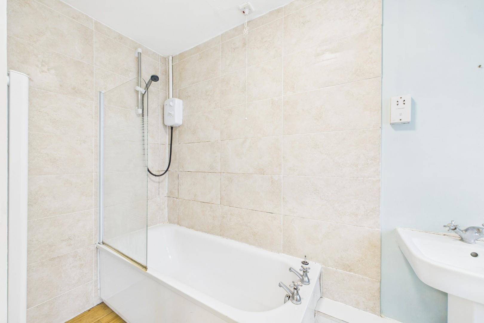 With a door leading from the entrance hall, bath with shower over and glass screen with full height tile surround, WC, hand wash basin and an obscured double glazed window to the front