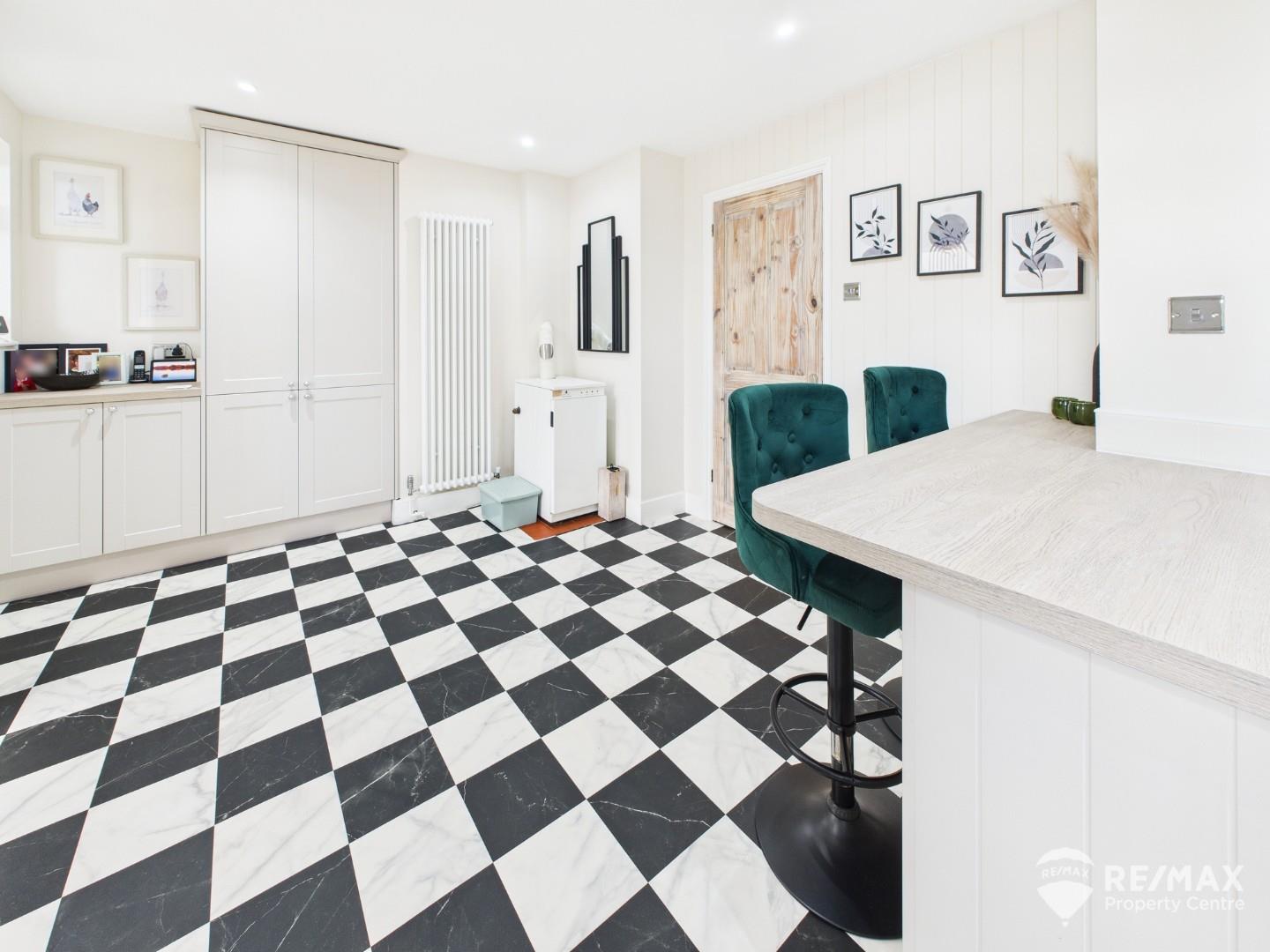 Door leading through to conservatory room, open plan kitchen/diner with breakfast bar, larder cupboard, integral dishwasher. The newly fitted kitchen is a year old with a built in double oven (electric) induction hob/extractor and sink with drainer. Comprises of a range of base and eye level units with storage, vertical radiator and space for fridge/freezer. Oil fired boiler and windows to rear aspect.