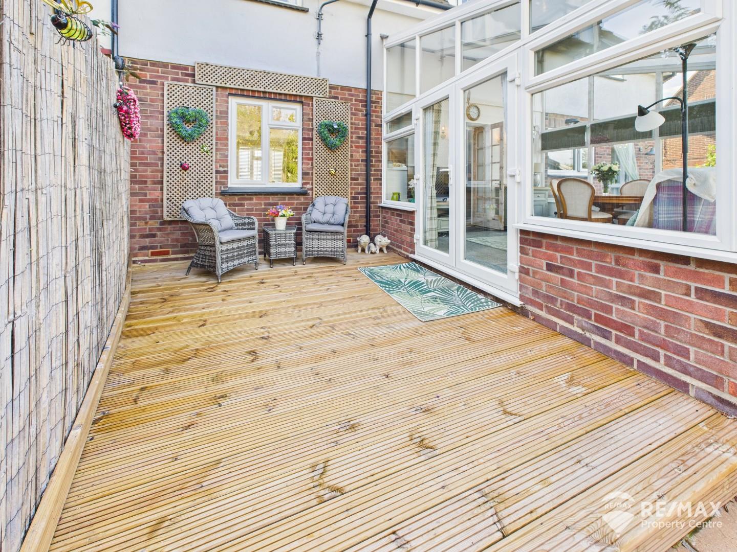 With double doors leading to decking and patio area plus rear garden. Wall mounted electric feature fire.