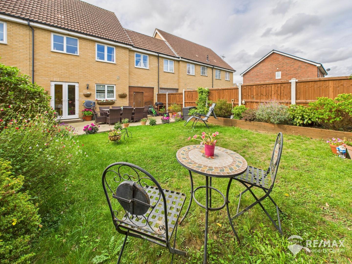 The ground floor features a bright kitchen/diner with French doors opening to the garden, a spacious lounge, and a downstairs WC. Outside, the garden offers a patio/seating area and good-size garden, perfect for entertaining or relaxing.