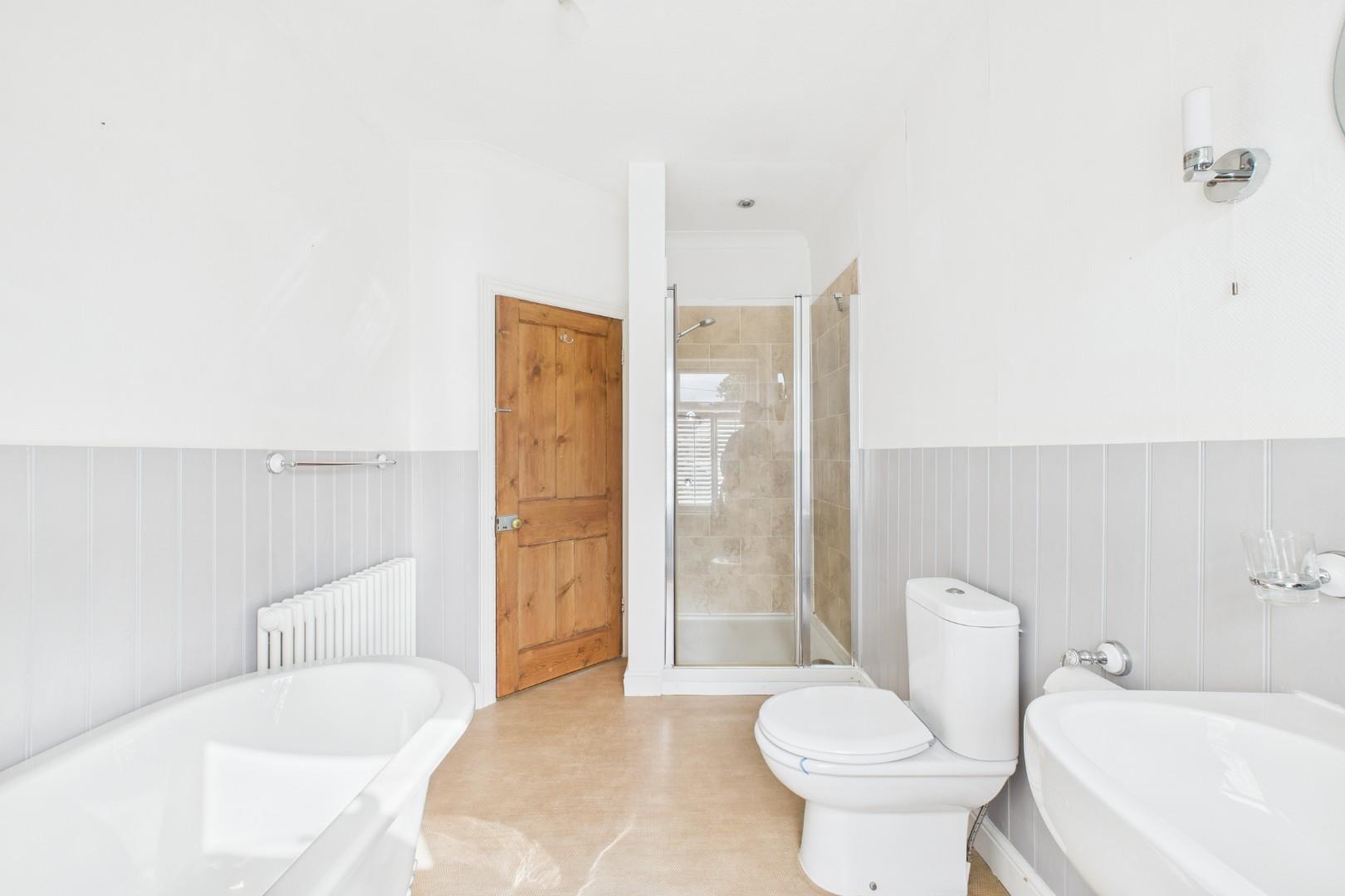Upstairs are 2 good sized bedrooms and a family bathroom with a beautiful stand-alone bath and a separate shower.