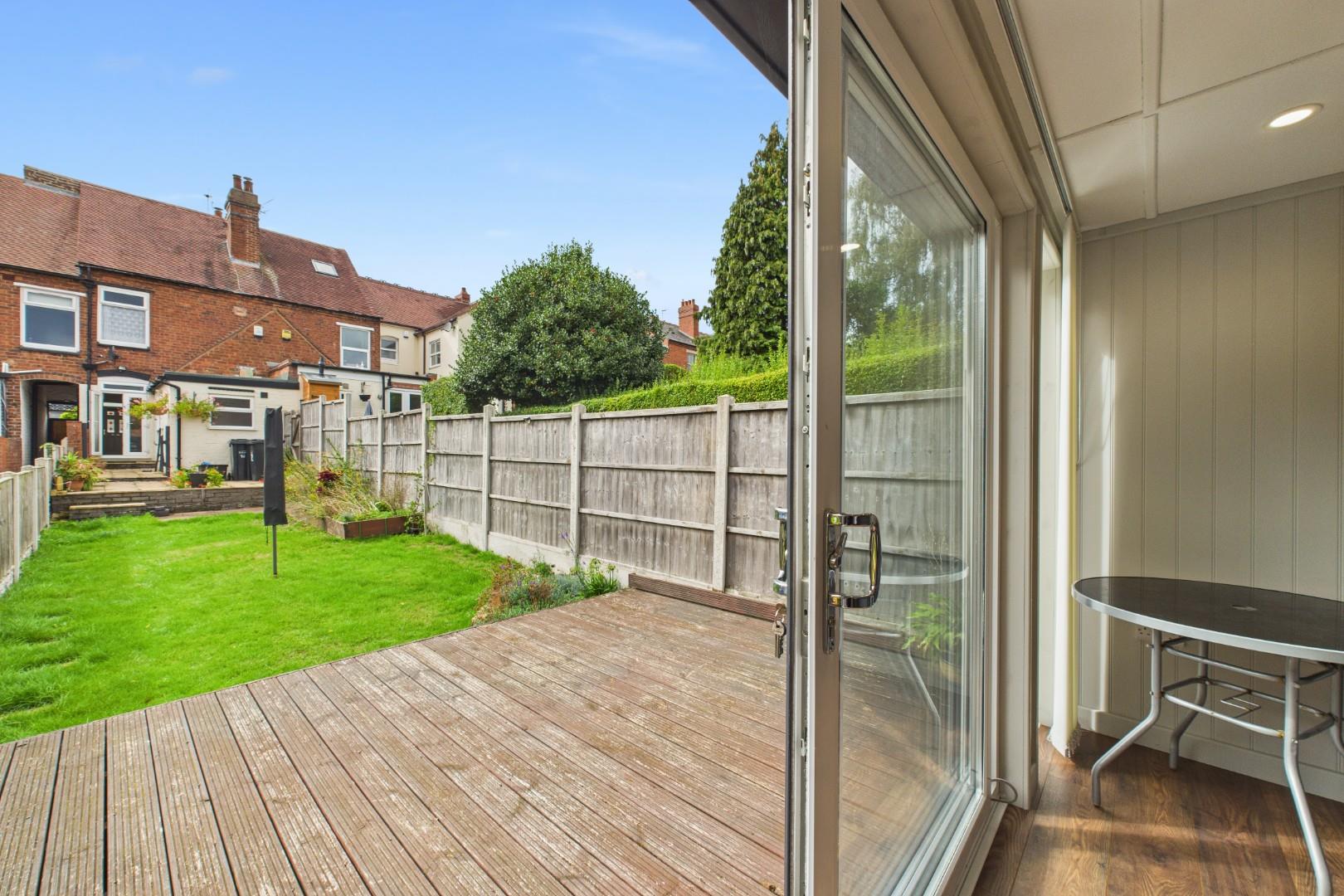 The low maintenance garden has a decking area to the rear, leading to the summerhouse and a slabbed patio area.