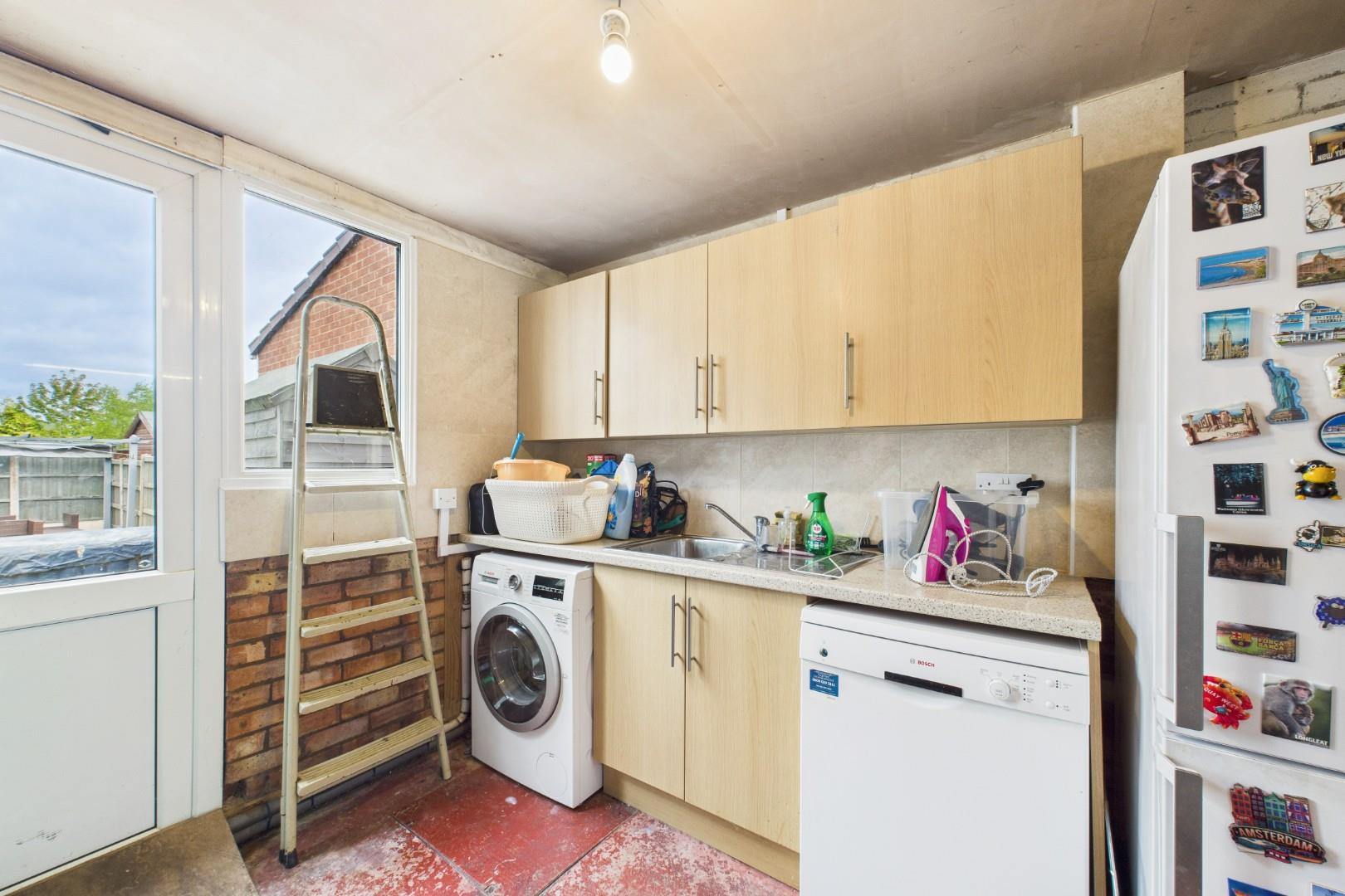 With an up and over door, containing lights and power throughout. To the rear is a utility area consisting of wall and base units and a stainless steel sink and drainer. Double glazed door to the rear garden.