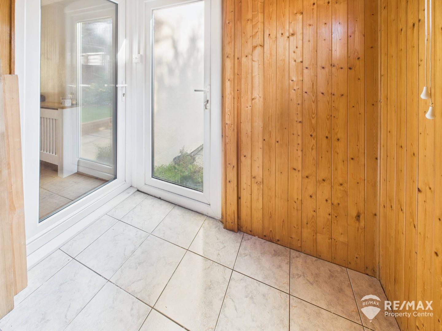Window to rear, tiled floor with door to side opening to patio and garden