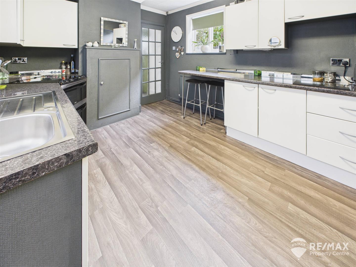 Fitted with a range of wall and base units, Stainless steel sink/drainer with mixer tap, space for cooker, 2 windows to side aspect, a door to garden and a further door leading to utility area and GF WC