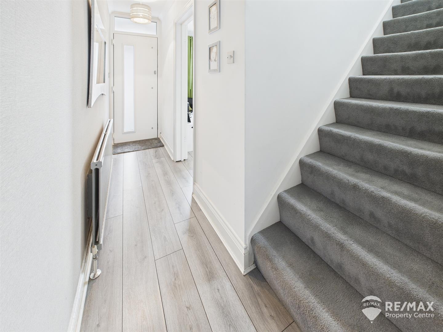Composite entrance door, stairs to first floor and doors through to lounge and dining room