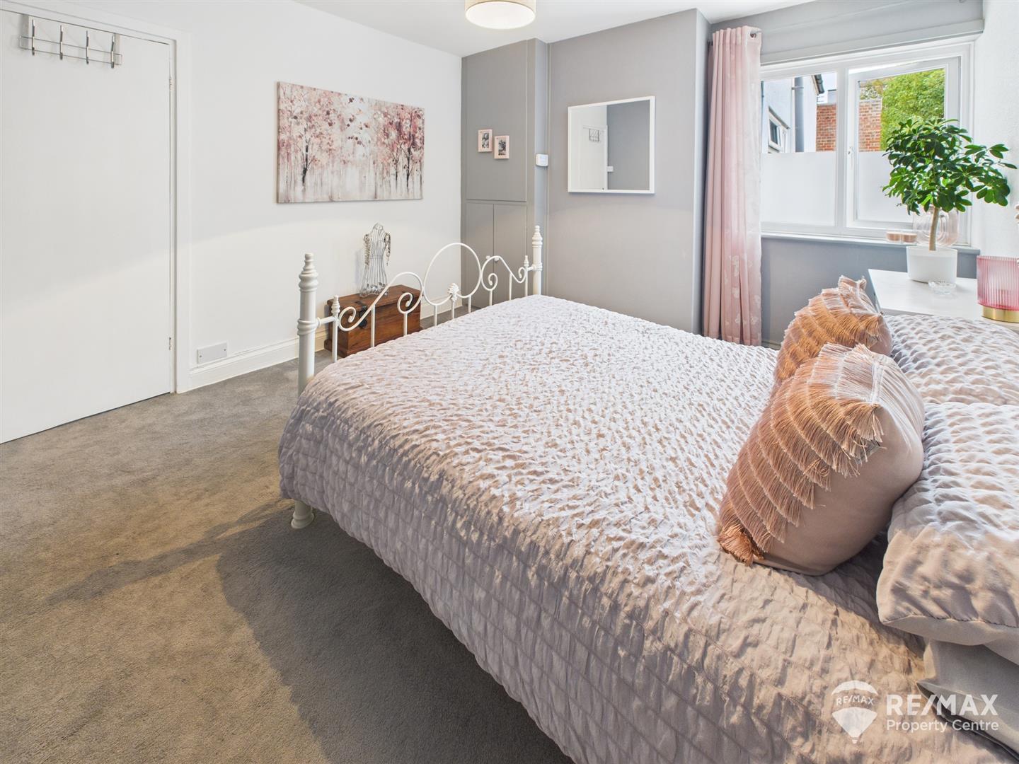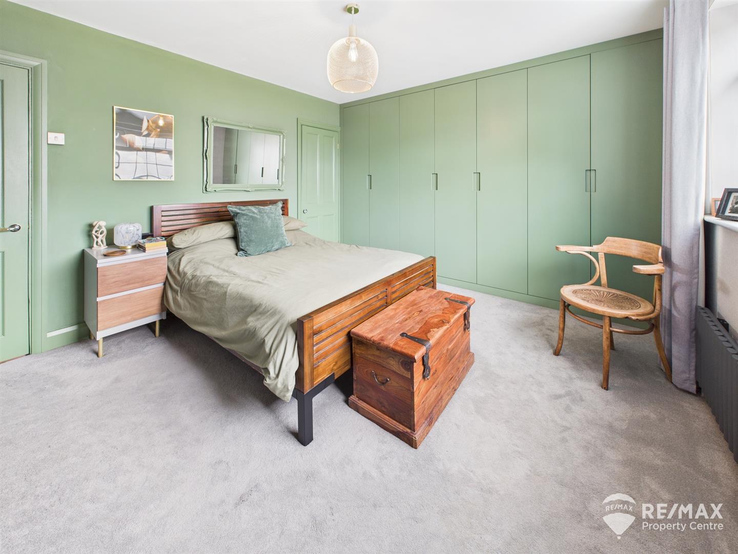 With one wall of fitted wardrobes, storage cupboard and window to front aspect