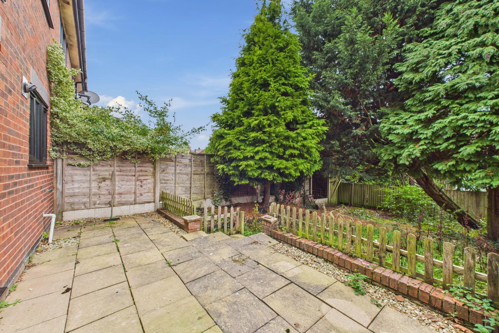 With patio doors leading from the dining room, patio area to the front with lawn beyond, side access gate leading to the front