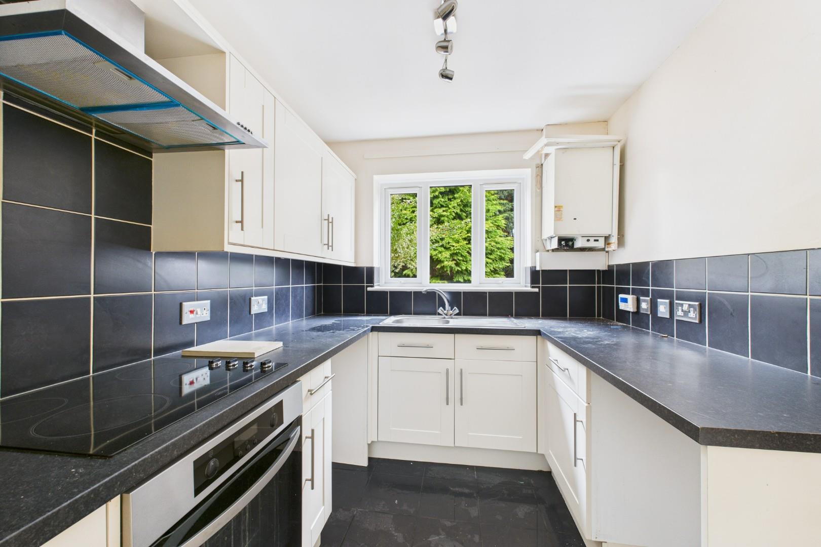 With a door leading from the dining room, fitted kitchen with a range of wall and base units with worktops, stainless steel sink with mixer tap and drainer, oven with hob and extractor above and a double glazed window to the rear