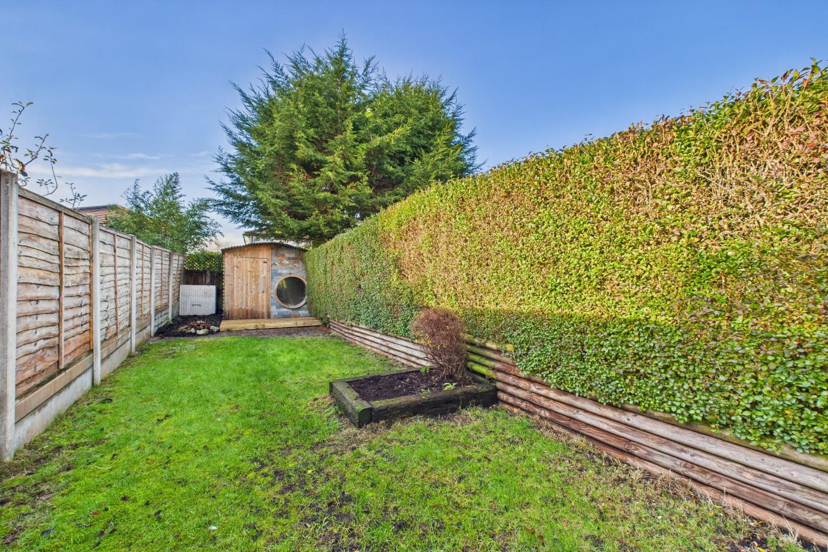 With a bi-folding door leading from the kitchen, sheltered patio area to the front with lawn beyond, further garden building with power and circular double glazed window to the rear of the garden and a gated side access passageway to the side