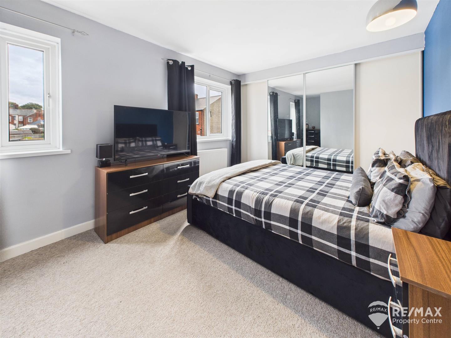 With fitted wardrobes to one wall, 2 windows to front aspect