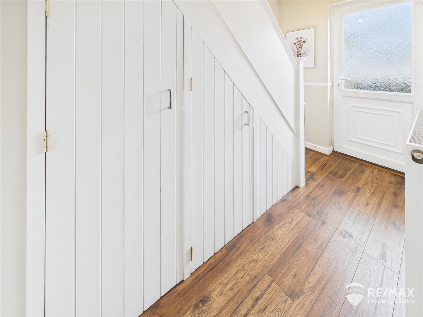 With under stairs storage, stairs to first floor, doors through to lounge and kitchen/dining room