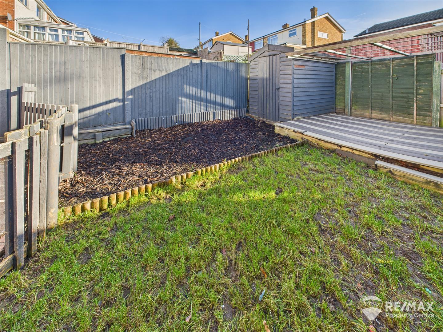 The rear garden enjoys a patio area, lawn, decked area, wooden storage shed to remain, outside tap