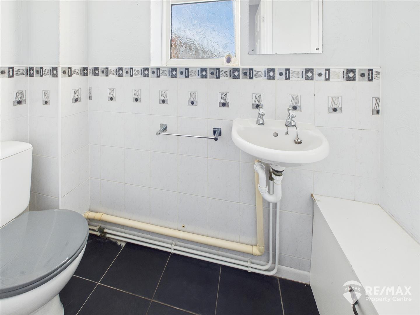 Opaque window to side aspect, Low level WC, wash hand basin, part tiled walls