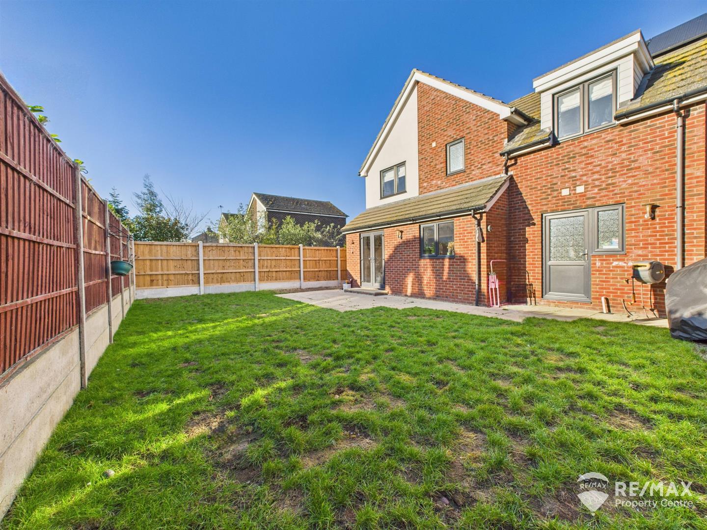 The fully enclosed rear garden is mainly laid to lawn, with patio area for entertaining, outside tap, personnel door to garage and gated access to both sides of the property