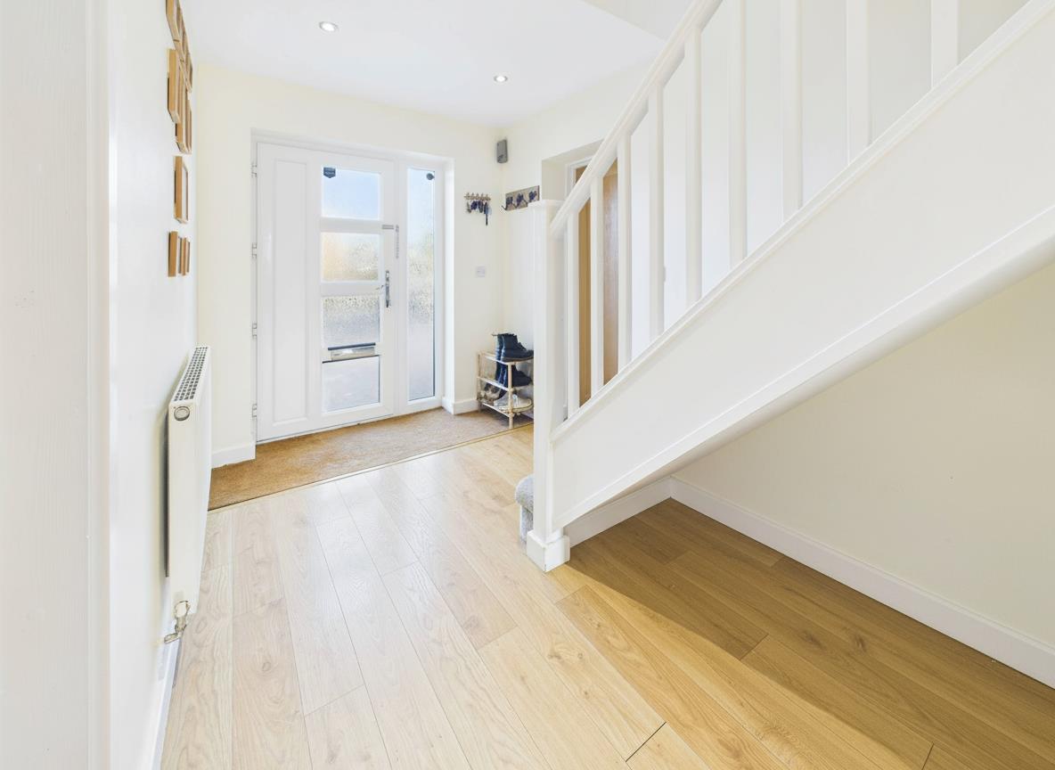 Bright and spacious with oak doors leading to lounge, kitchen diner, GF WC and garage, stairs to first floor