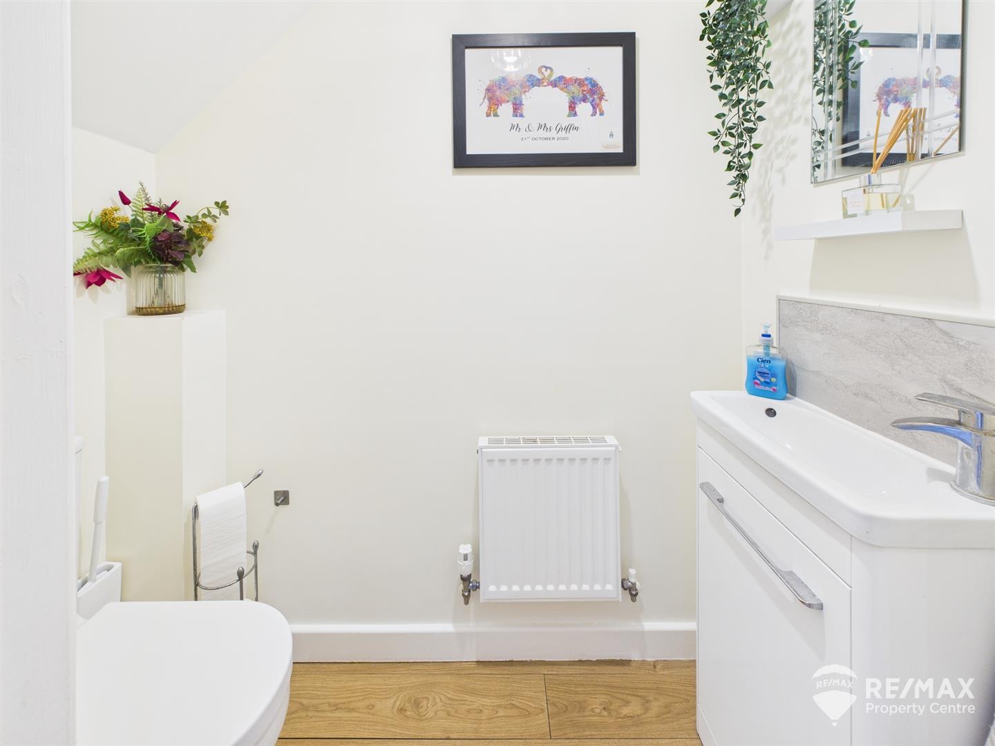 Vanity style wash hand basin with tile splash back, low level WC,