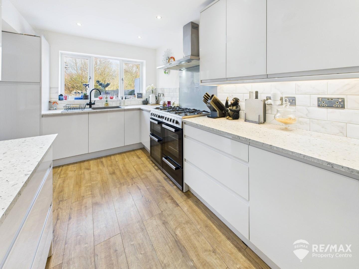 An impressive and extended five-bedroom semi-detached family home, superbly located in a quiet residential area adjacent to a green and woodland area.