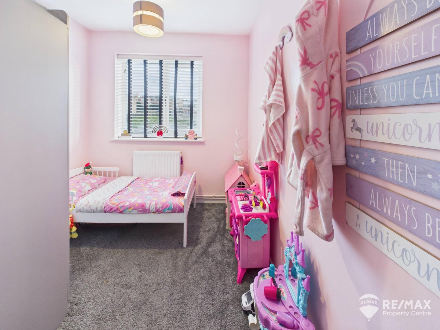 UPVC double glazed windows to front with fitted venetian blind, built-in double wardrobes and radiator