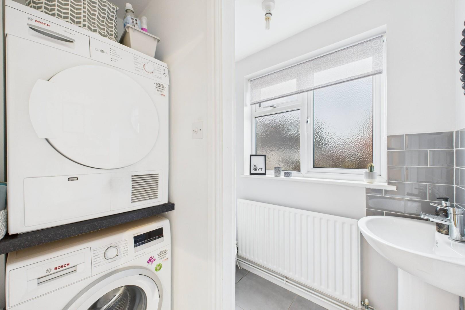 With an opening from the utility, WC, hand wash basin, a double glazed window to the rear and a central heating radiator